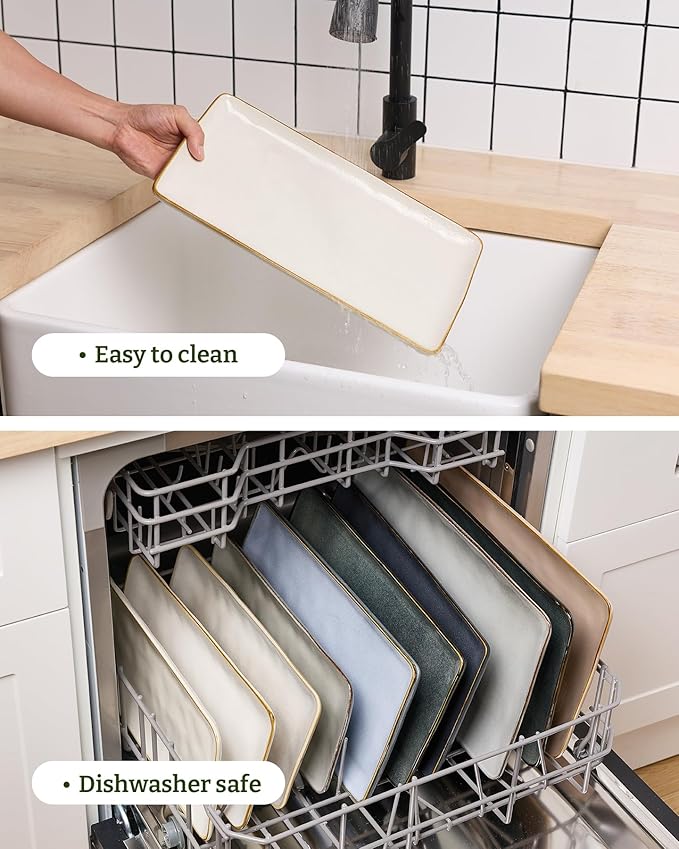 • Dishwasher and Microwave Safe: Famiware rectangle plates are made of premium stoneware. Each serving platters and trays is Dishwasher and microwave safe.