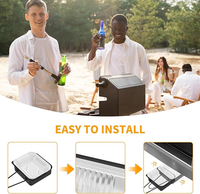 • 【Easy Grease Management】Easily attach our drip pan to your grill for greasy mess-free cooking and easy cleaning. The aluminum liners are disposable and recyclable, making a simple drip pan perfect for cooking side dishes and food preparation.