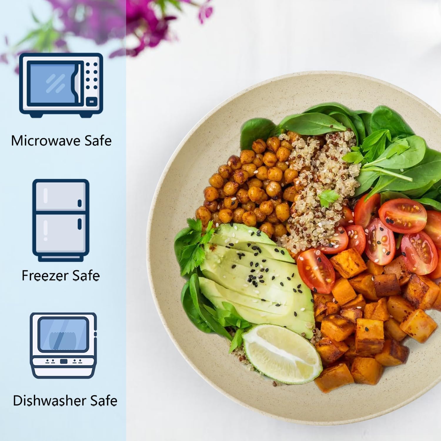 • 𝐖𝐡𝐞𝐚𝐭 𝐒𝐭𝐫𝐚𝐰 𝐌𝐚𝐭𝐞𝐫𝐢𝐚𝐥: Each 9 inch plastic plate is constructed with organic wheat straw fiber and food-grade PP, 100% BPA free, non-toxic, odorless.