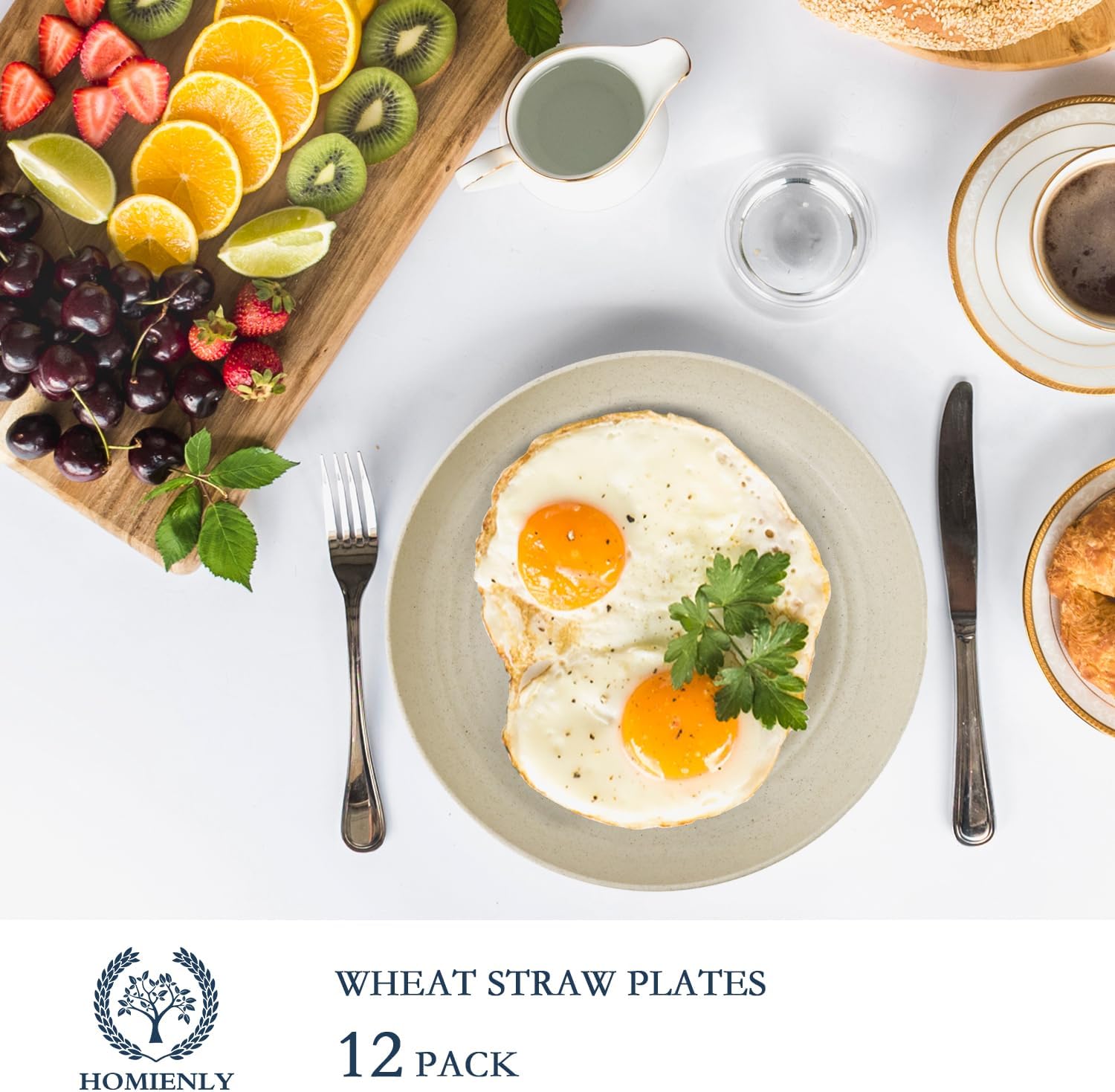 Homienly Wheat Straw Dinner Plates Set of 12 - Microwave & Dishwasher Safe Unbreakable Kids Plates (Beige, 9 inch)