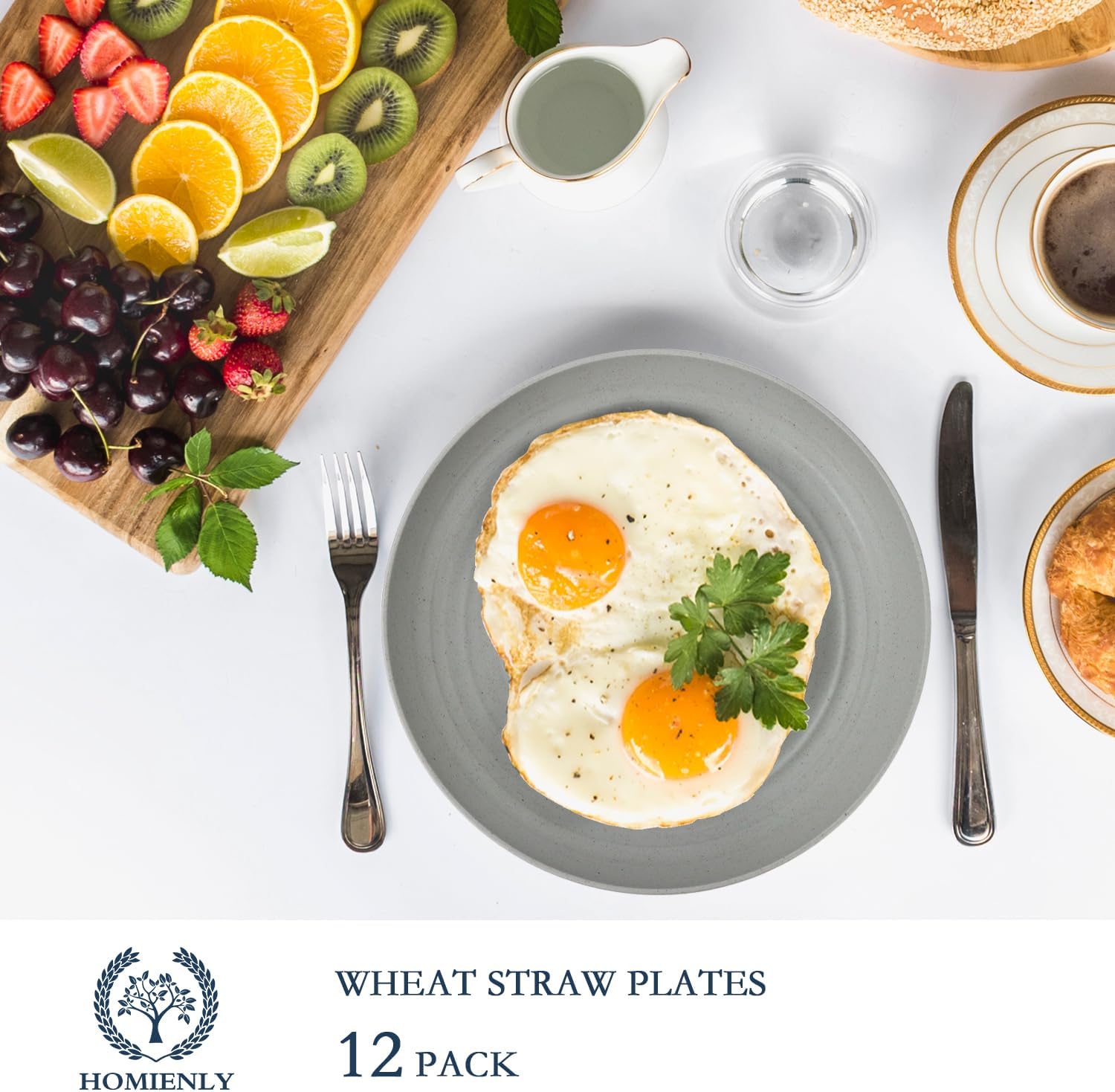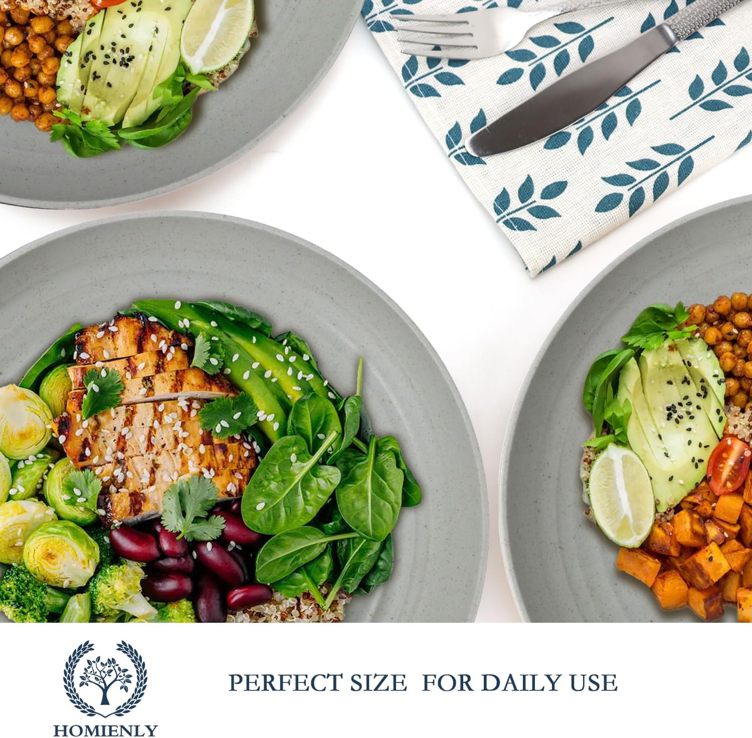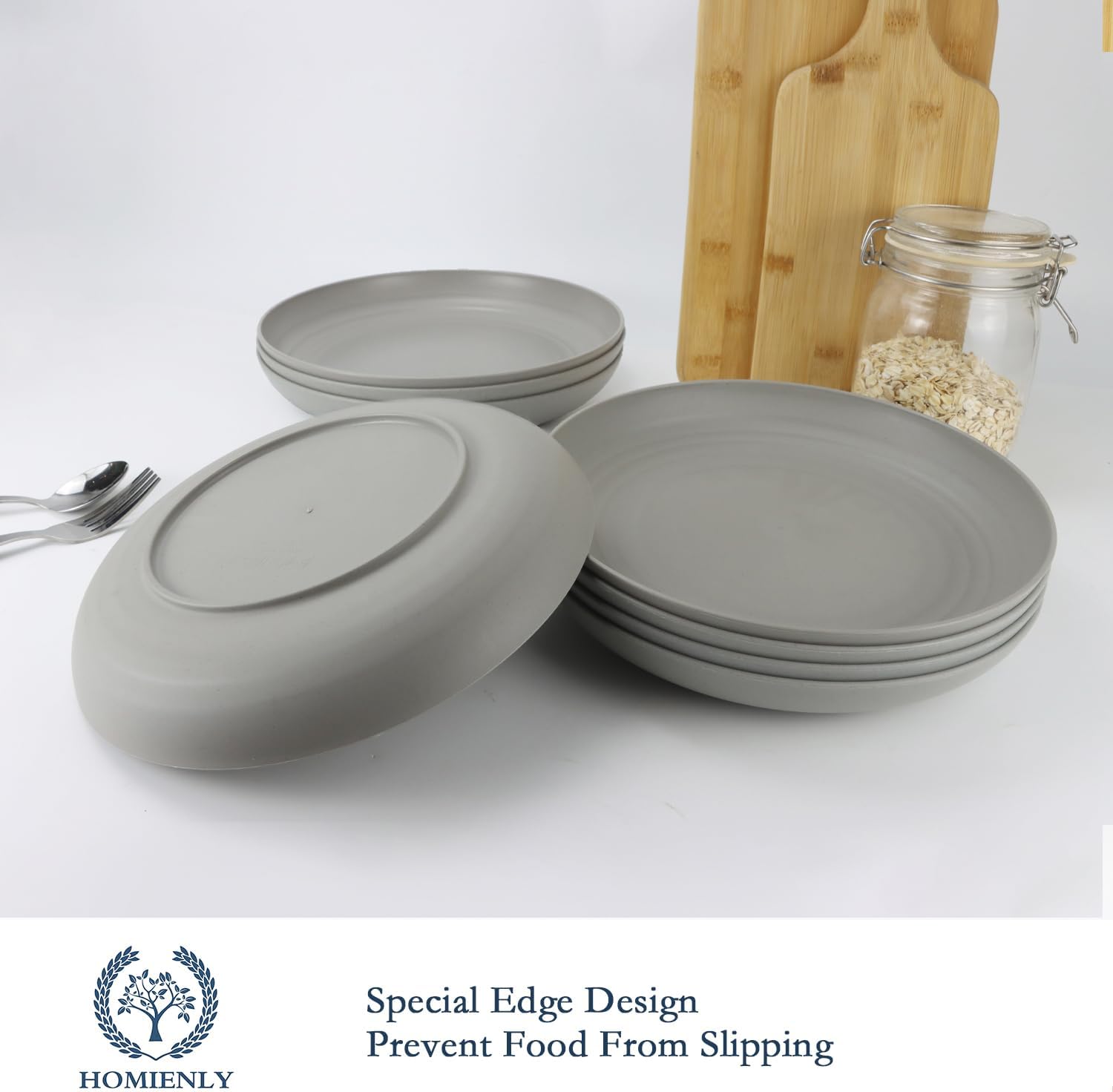 Homienly Deep Dinnerware Set of 12 - Alternative to Plastic, Microwave & Dishwasher Safe Wheat Straw Plates for Kitchen - Unbreakable Kids Plates (Grey, 10 inch)