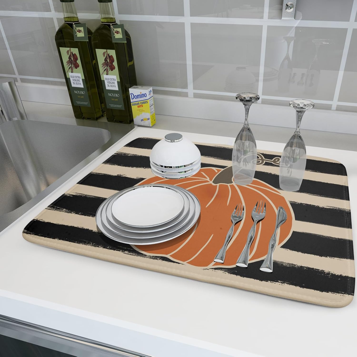• Size: The fall kitchen drying mats measures 18×24 inch,big enough for your dish drying rack,and it has a lot of space for your dishes,cups and tableware.