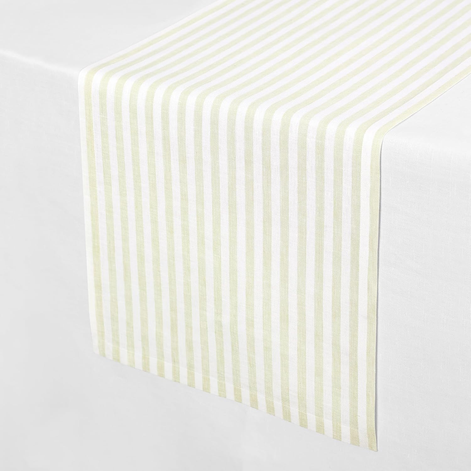 • 𝗖𝗼𝗺𝗽𝗼𝘀𝗶𝘁𝗶𝗼𝗻 𝗮𝗻𝗱 𝗖𝗿𝗮𝗳𝘁𝘀𝗺𝗮𝗻𝘀𝗵𝗶𝗽 : 100% Pure European Flax Linen Sage and White Thanksgiving Table Runner - 𝗔𝗺𝗮𝗹𝗳𝗶 𝗦𝘁𝗿𝗶𝗽𝗲 | Handcrafted By Skilled Artisans.