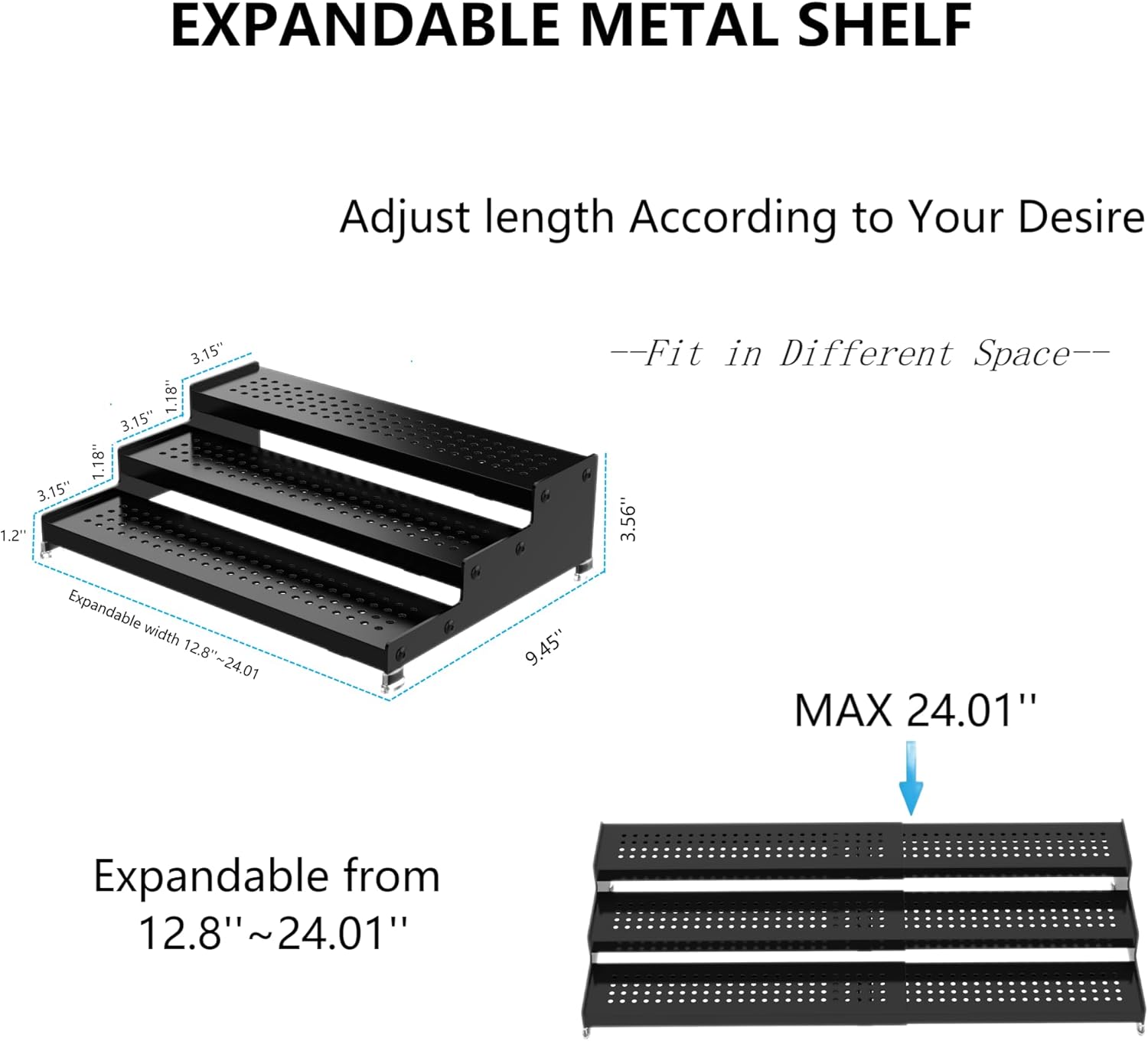 • ⭐[Expandable]The width of spice rack can be expandable from 12.8 to 24.01 inches which can be adjusted according to your needs to effectively utilize your storage space. It is save storage solution for spice jars.