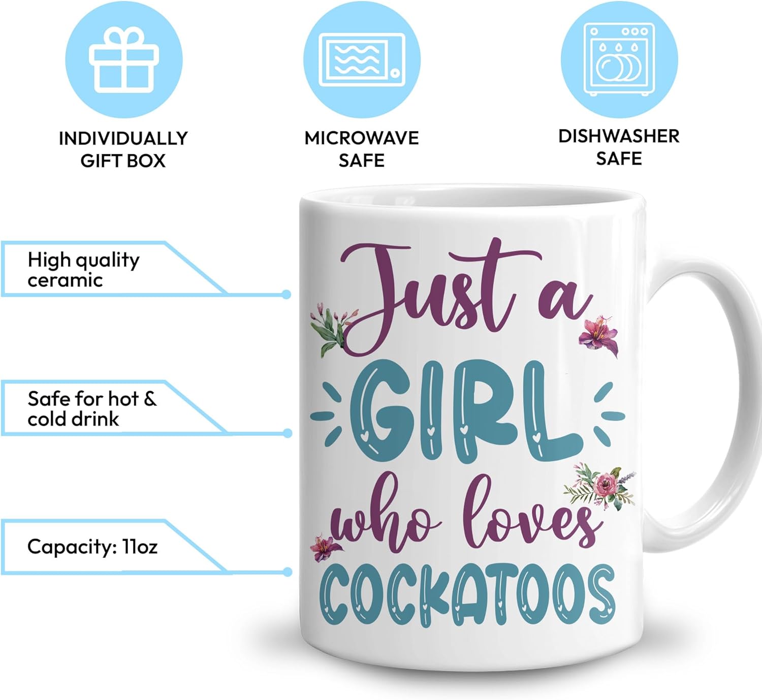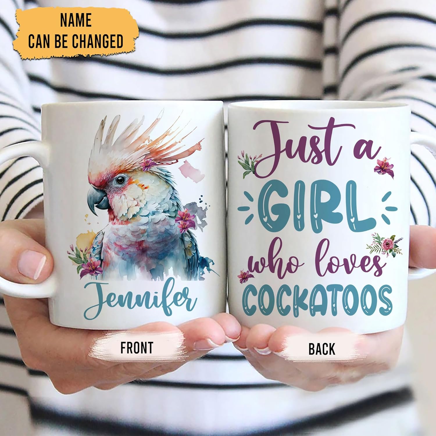 Hyturtle Personalized Gifts Cockatoo Lover - Just A Girl Who Loves Cockatoos Custom Name Ceramic Coffee Mug Cup 11oz - Idea Cute Animal Lover Gifts For Women, Girl Daughter On Birthday, Christmas