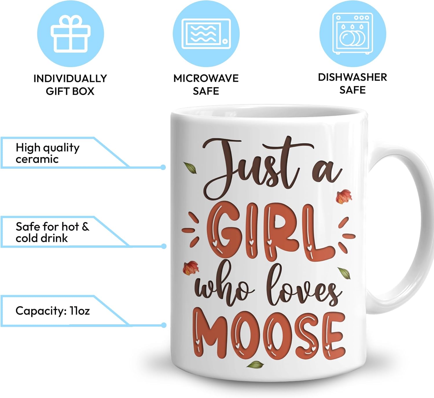 Hyturtle Personalized Gifts Moose Lover - Just A Girl Who Loves Mooses Custom Name Ceramic Coffee Mug Cup 11oz - Idea Cute Animal Lover Gifts For Women, Girl Daughter On Birthday, Christmas