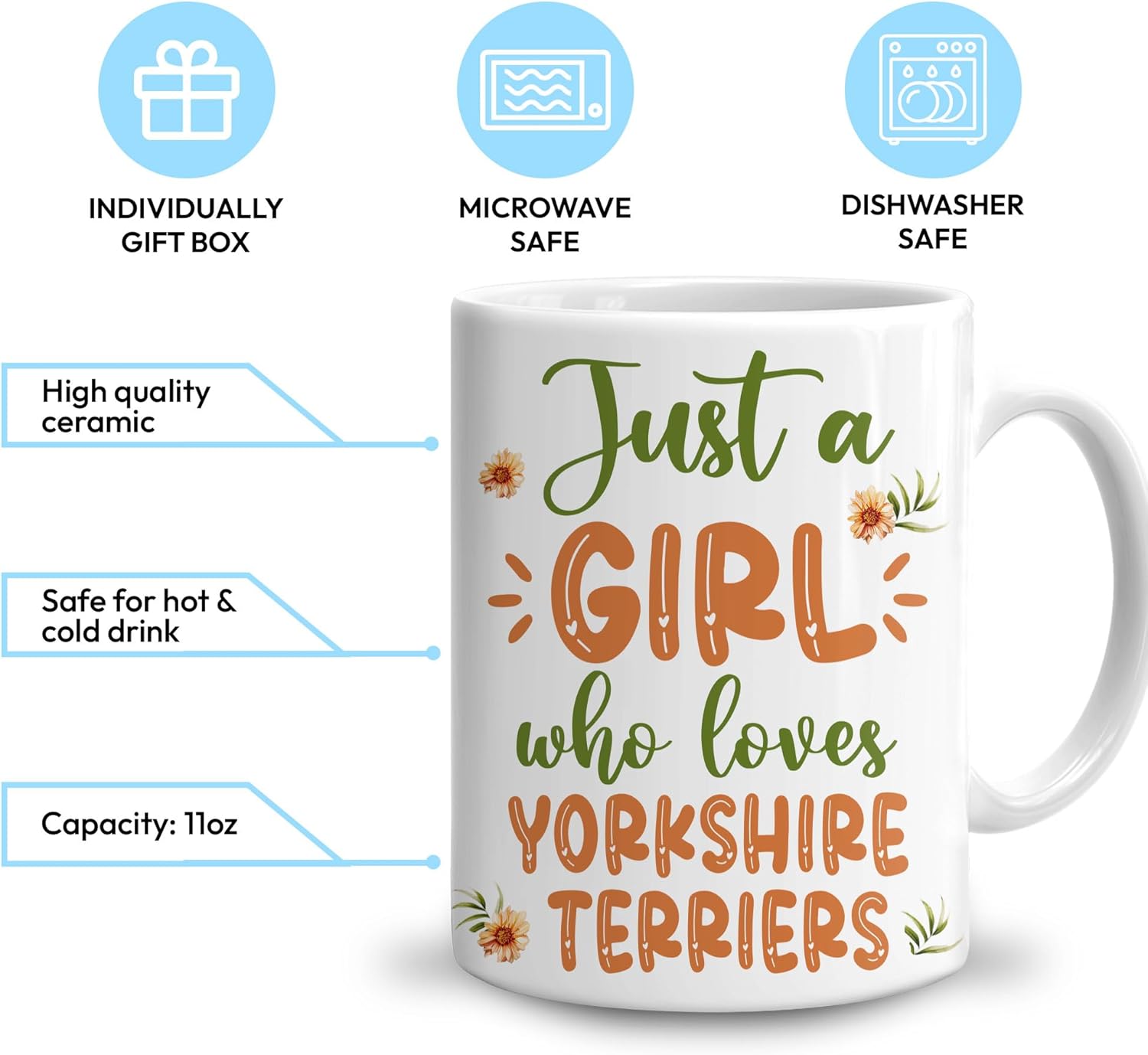Hyturtle Personalized Gifts Dog Lover - Just A Girl Who Loves Yorkshire Terriers Custom Name Ceramic Coffee Mug Cup 11oz - Idea Cute Dog Lover Gifts For Women, Girl On Birthday, Christmas