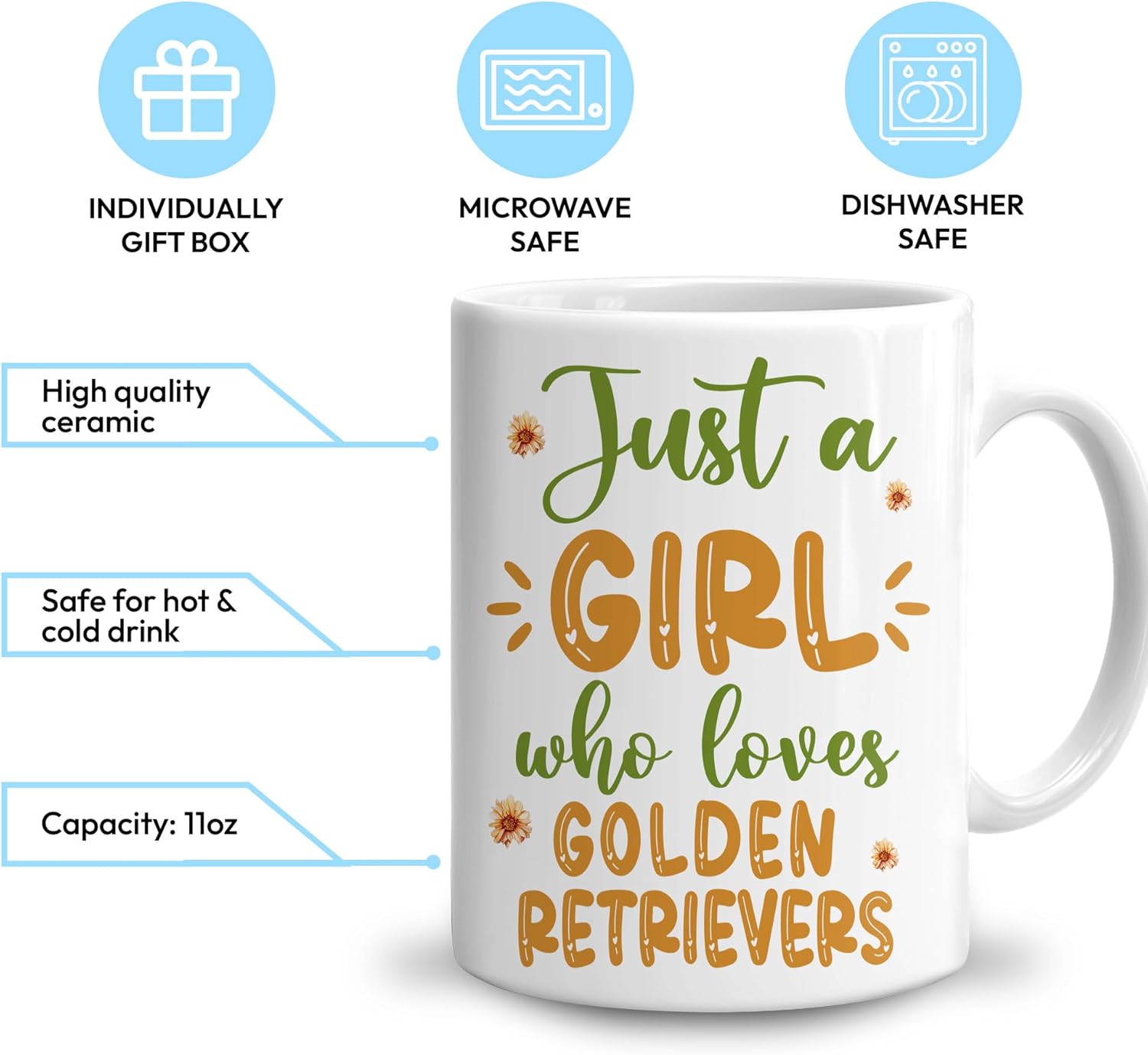 Hyturtle Personalized Gifts Golden Retriever Lover - Just A Girl Who Loves Golden Retrievers Custom Name Ceramic Coffee Mug Cup 11oz - Idea Cute Dog Lover Gifts For Women, Girl On Birthday, Christmas