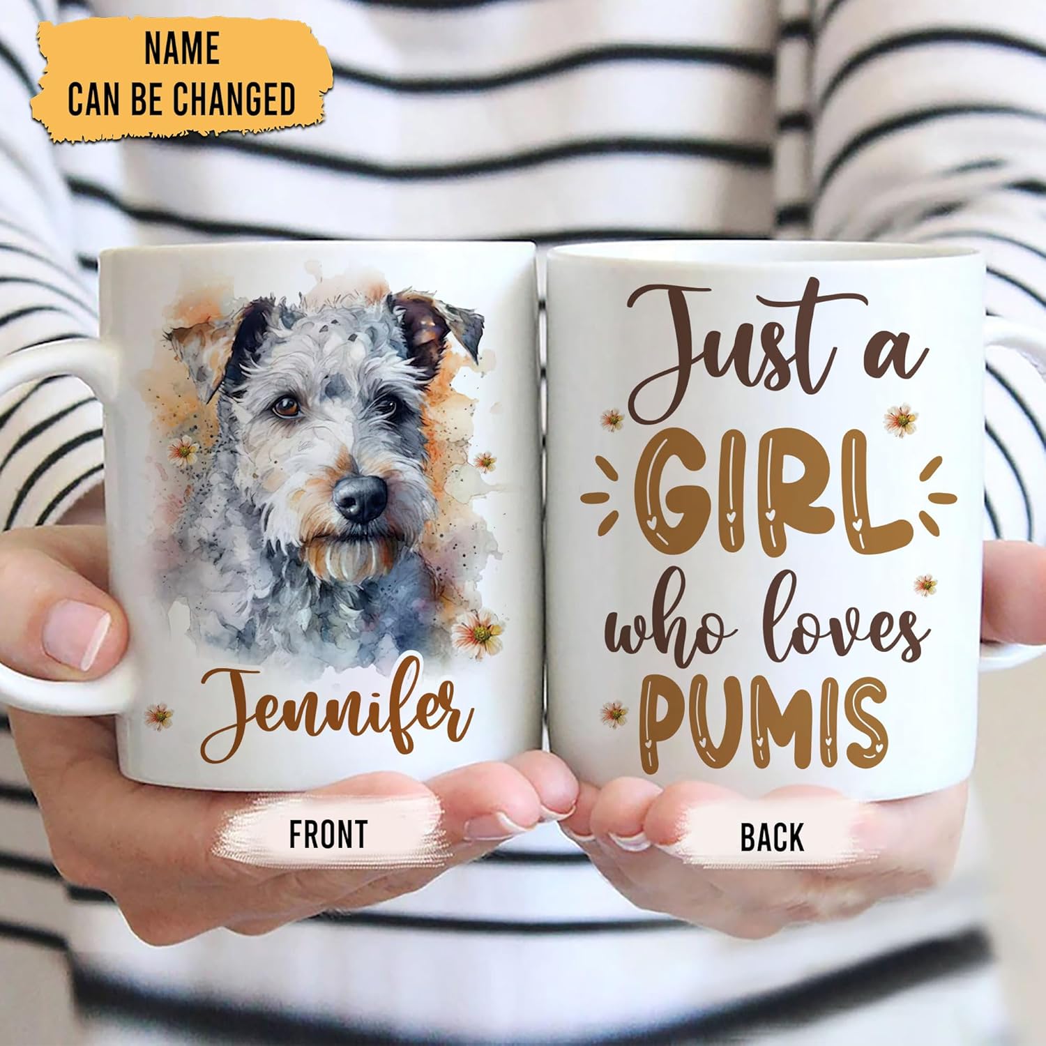 Hyturtle Personalized Gifts Pumi Lover - Just A Girl Who Loves Pumis Custom Name Ceramic Coffee Mug Cup 11oz - Idea Cute Dog Lover Gifts For Women, Girl Daughter On Birthday, Christmas