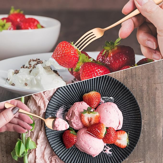• 【MULTIPLE SCENES】ENLOY rose gold silverware set can be used in a variety of scenes, whether it is daily use or formal occasions, such as weddings, parties and family dinners, picnics, or cafes, pubs and hotels are very good choices.