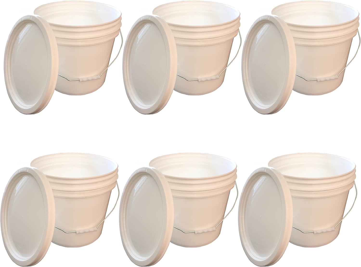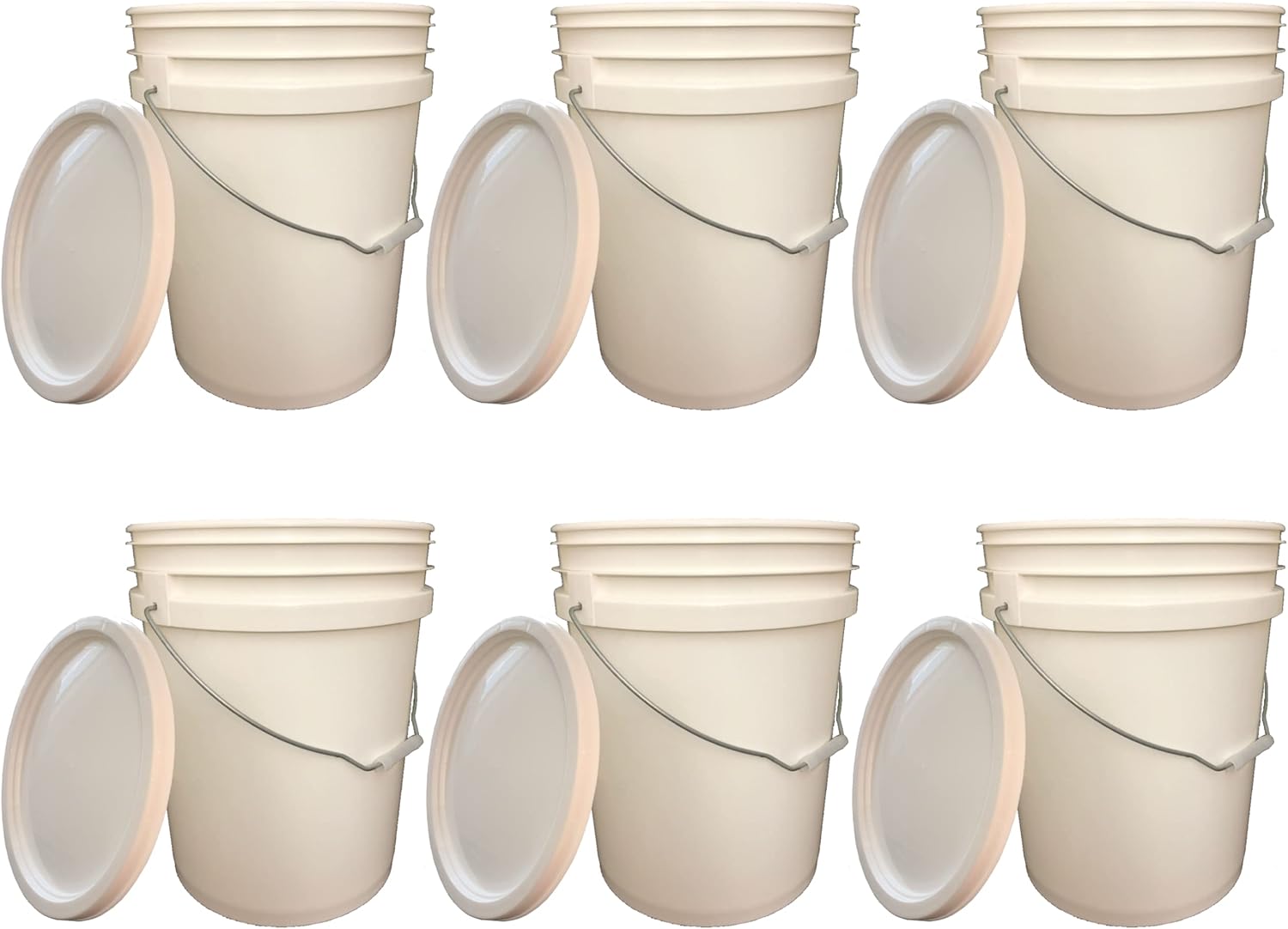 5 Gallon Bucket with Lid + Free Opener Tool Commercial Grade-Food Safe-Bucket BPA Free,6 Pack White (6 Pack/lid, White), Great Value, Durable. Comfortable Handle, Easy to Clean, Perfect on The Home