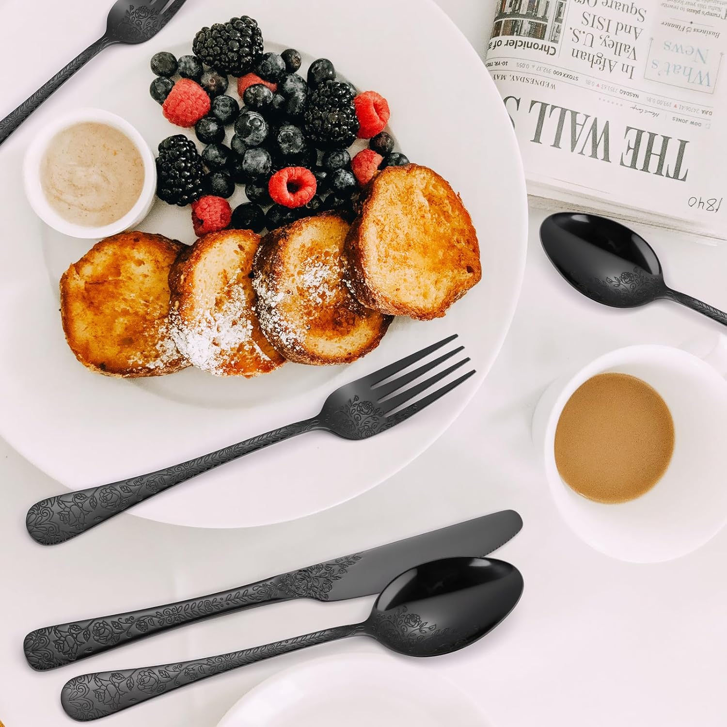 • DURABLE HEAVYWEIGHT MATERIAL: Introducing our Black Floral Flatware Set for 6, crafted from durable heavyweight material to ensure long-lasting use and elegance in every dining occasion
