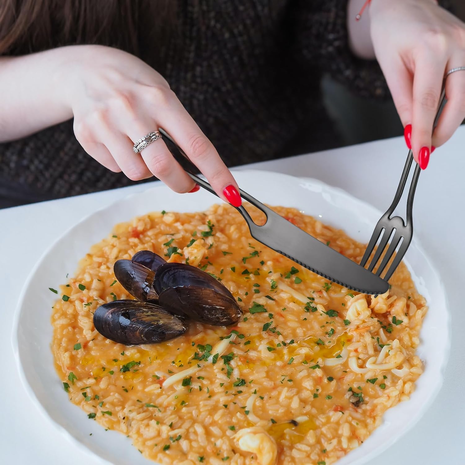 • EASY TO CLEAN AND DISHWASHER-SAFE: Introducing our sleek and stylish eating utensils sets, designed with convenience in mind. With its easy-to-clean and dishwasher-safe feature, this set is designed specifically for hassle-free meal times