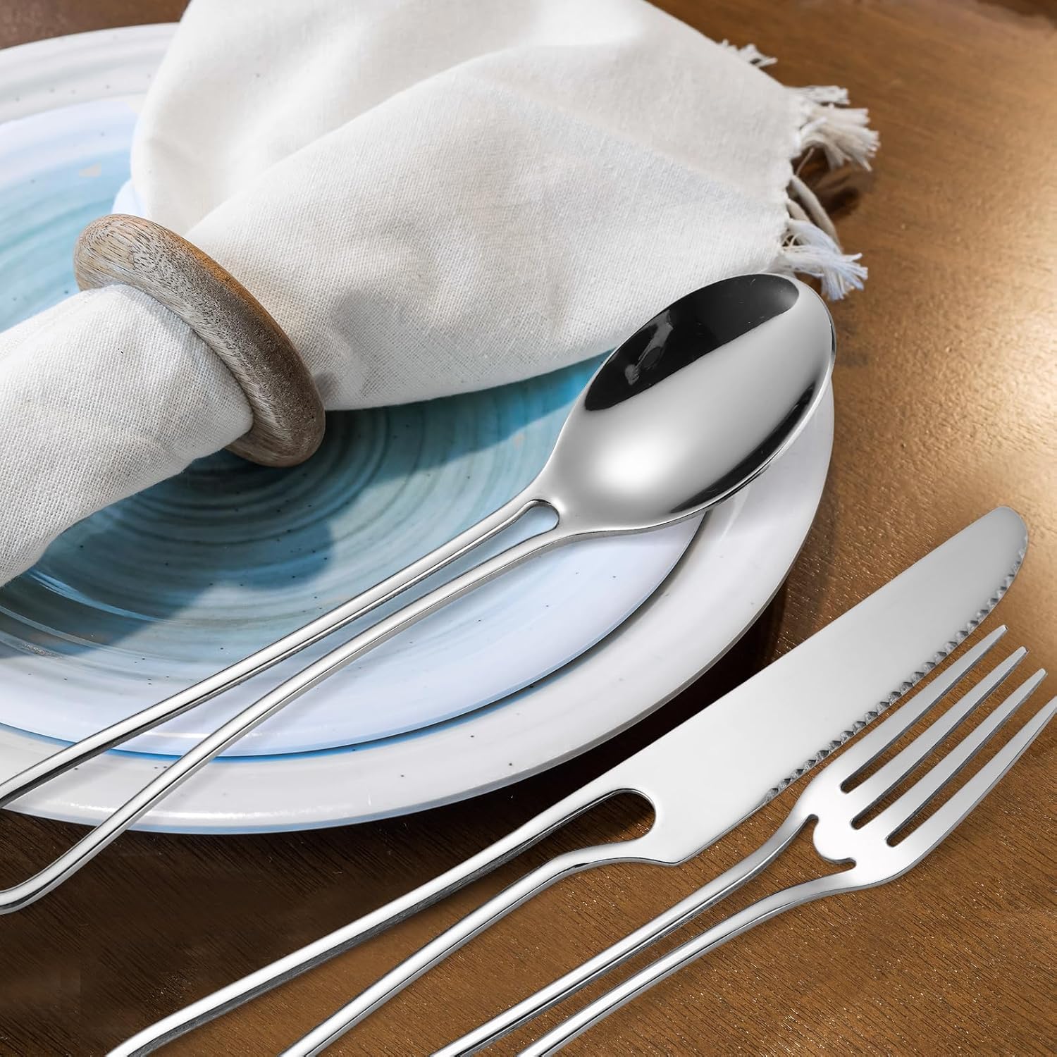 • HOLLOW OUT HANDLE: Elevate your dining experience with our elegant silver silverware set, featuring a unique hollow out handle design. Hollow Handle silverware for adding a touch of sophistication to your table setting