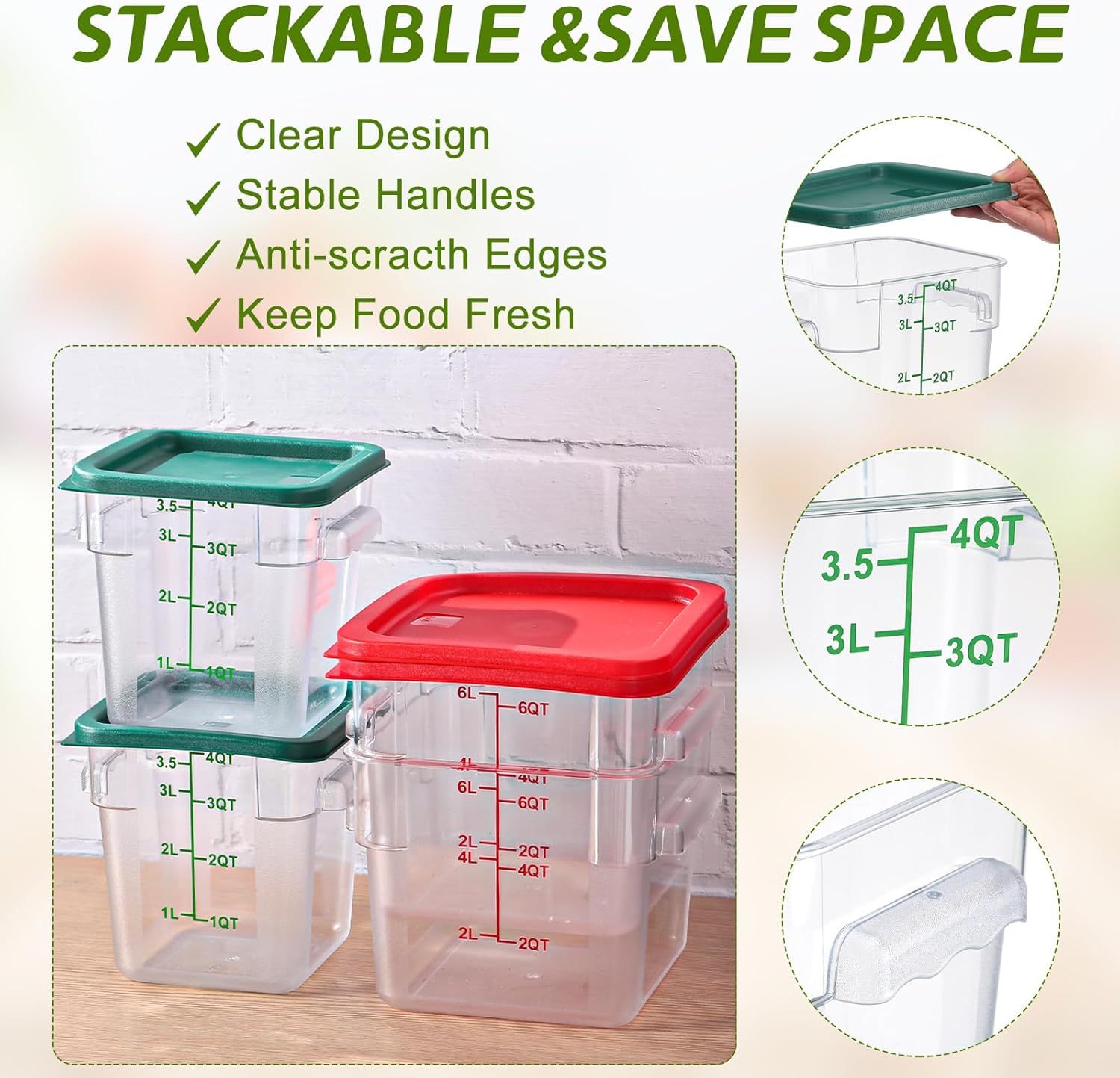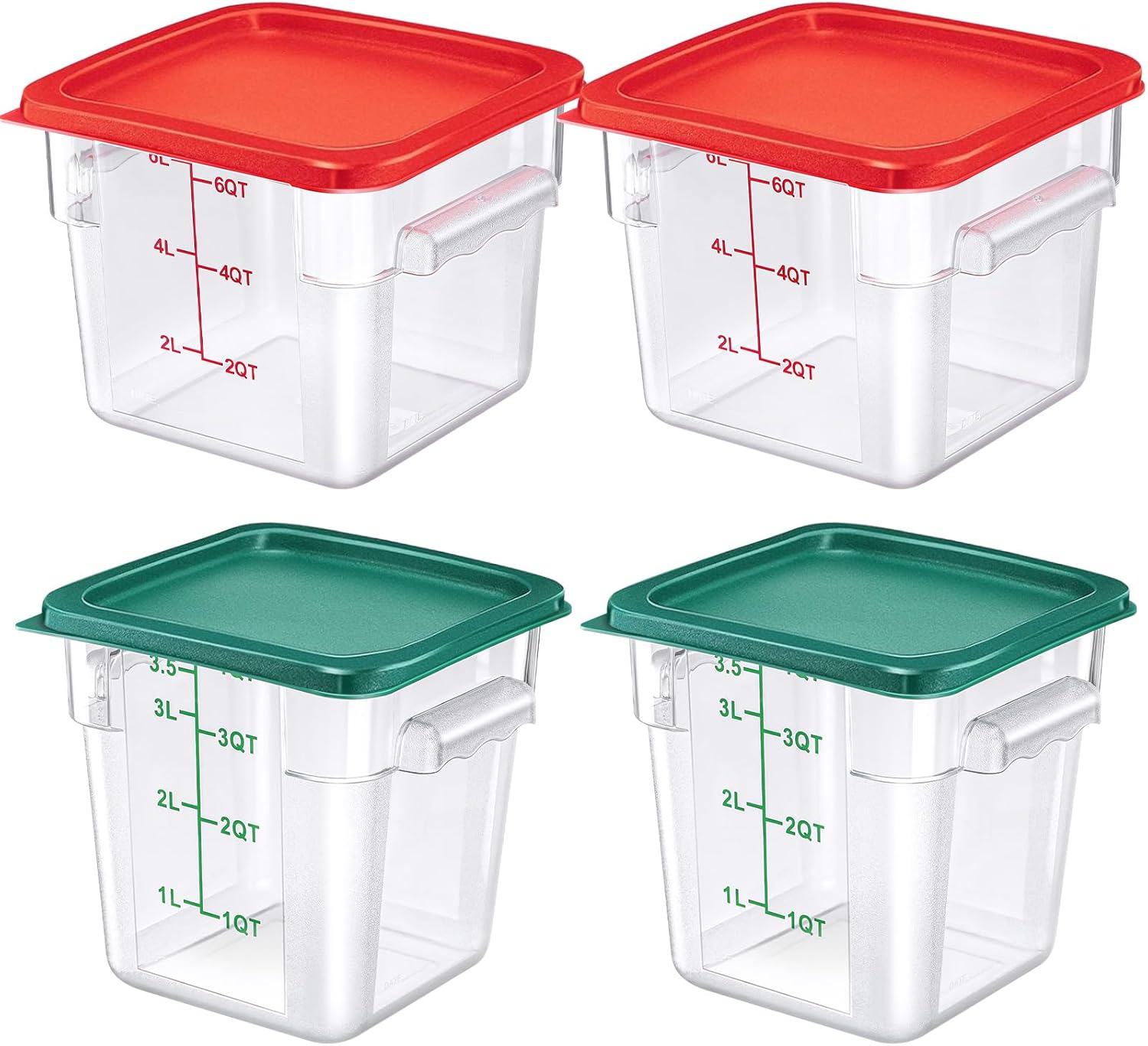 Lallisa 4 Pcs 6 Qt and 4 Qt Food Storage Containers with Lids and Handles Square Food Containers with Scales Polycarbonate Air Tight Containers for Home Storage Kitchen Restaurant