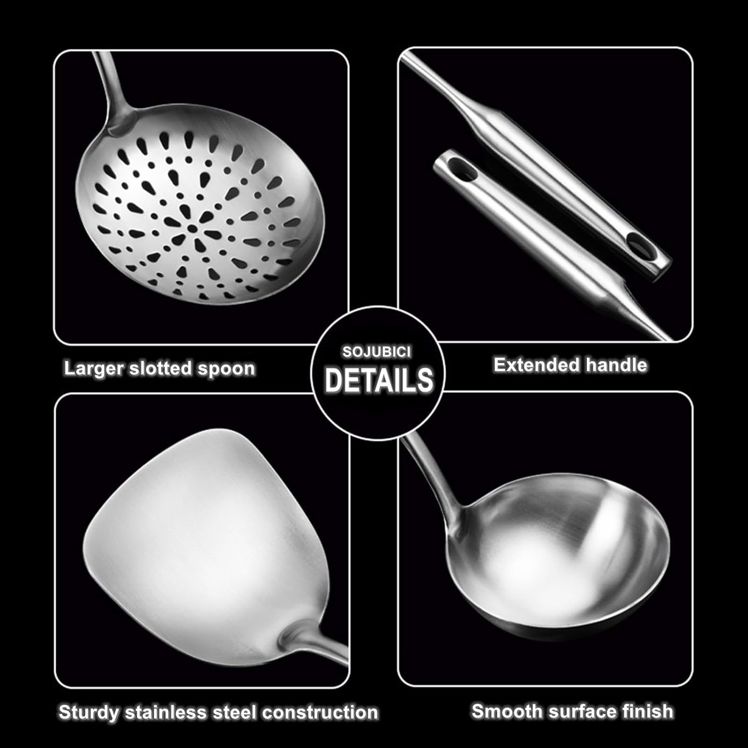 • 🌿Easy-Care Stainless Steel: Cleaning up after cooking is a breeze with this stainless steel utensils set, which is dishwasher-safe for added convenience. Resistant to staining, rust, and discoloration, these utensils maintain their sleek appearance even after repeated use and washing. Keep your kitchen sparkling and your tools gleaming.