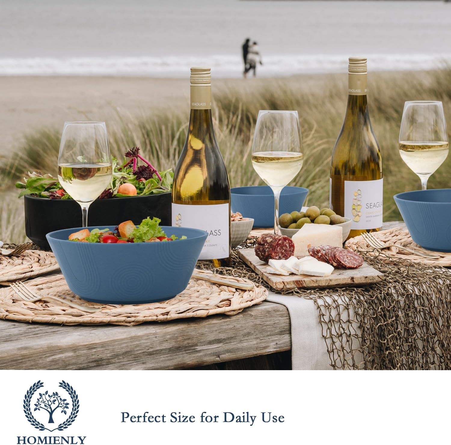 Homienly Wheat Straw Bowls - 36 Oz Soup Bowl Set 6 Unbreakable Dinnerware, Microwave and Dishwasher Safe Bowls, Alternative to Plastic Bowl Reusable, Bowls for Kitchen, Soup, Dinner, Pho(Navy Blue)