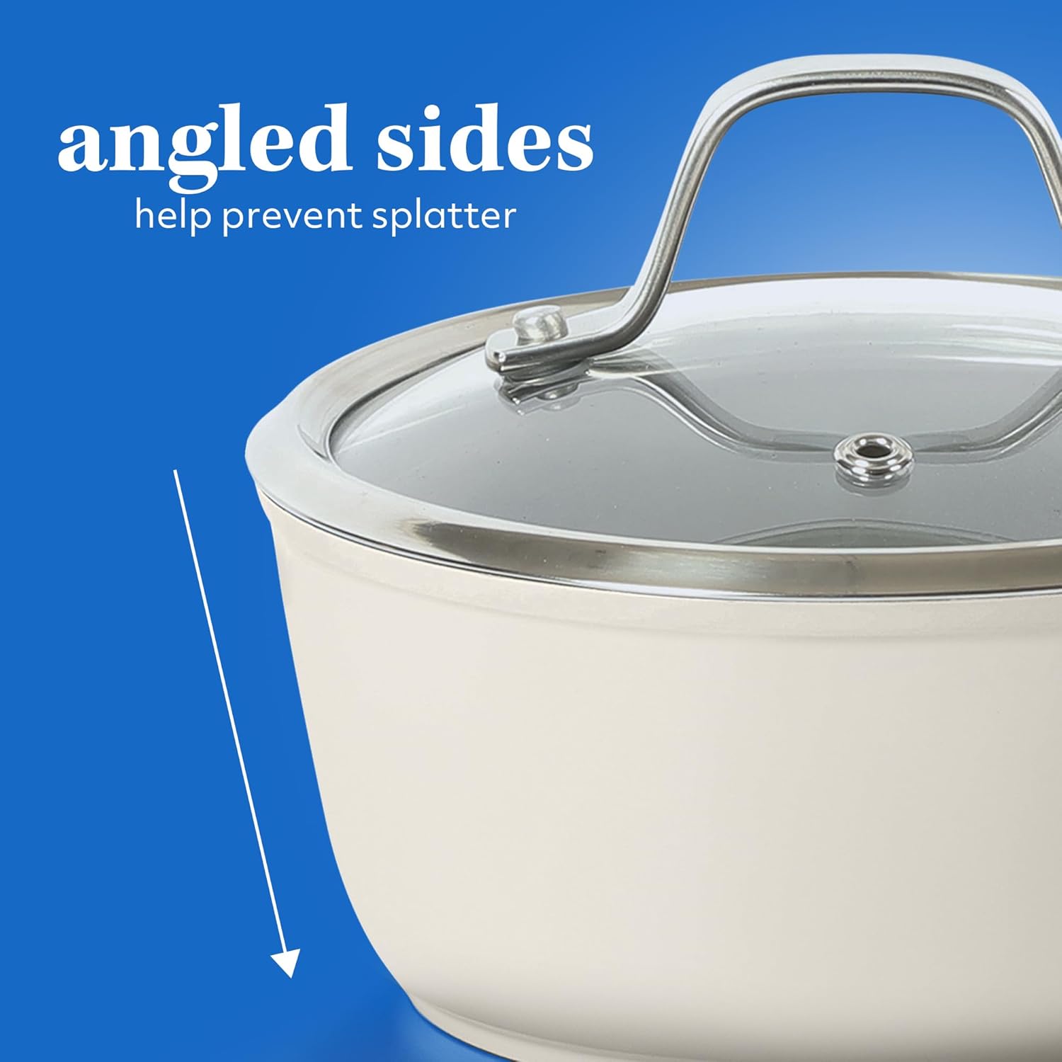 Sur La Table Kitchen Essentials 10 Piece PFA Free Non-Toxic Titanium Ceramic Nonstick Interior Forged Aluminum Cookware Pots and Pans Set - Linen White - Induction Compatible