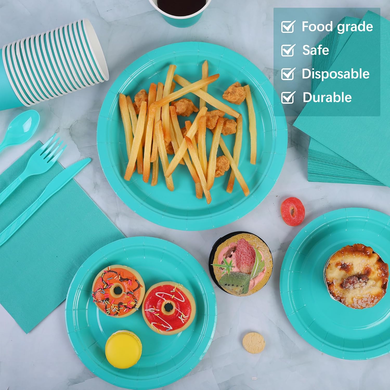 durony 350 Pieces Teal Blue Party Supplies Teal Blue Dinnerware Set Paper Plates Cup Napkins Serve 50 Guests for Birthday Wedding Baby Shower Party Family Picnic