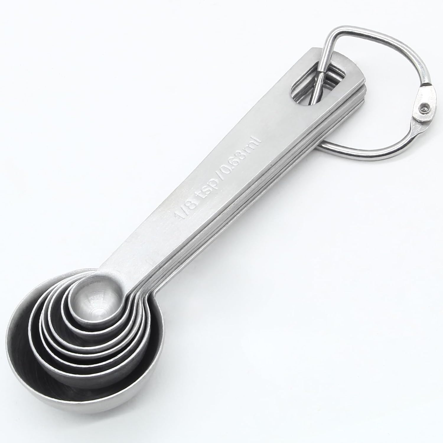 • 7-Piece Set: Designed with deeply-engraved measurements on the handles, the teaspoon measure spoons with 1/8 tsp, 1/4 tsp, 1/2 tsp, 3/4 tsp, 1 tsp, 1/2 tbsp, 1 tbsp.