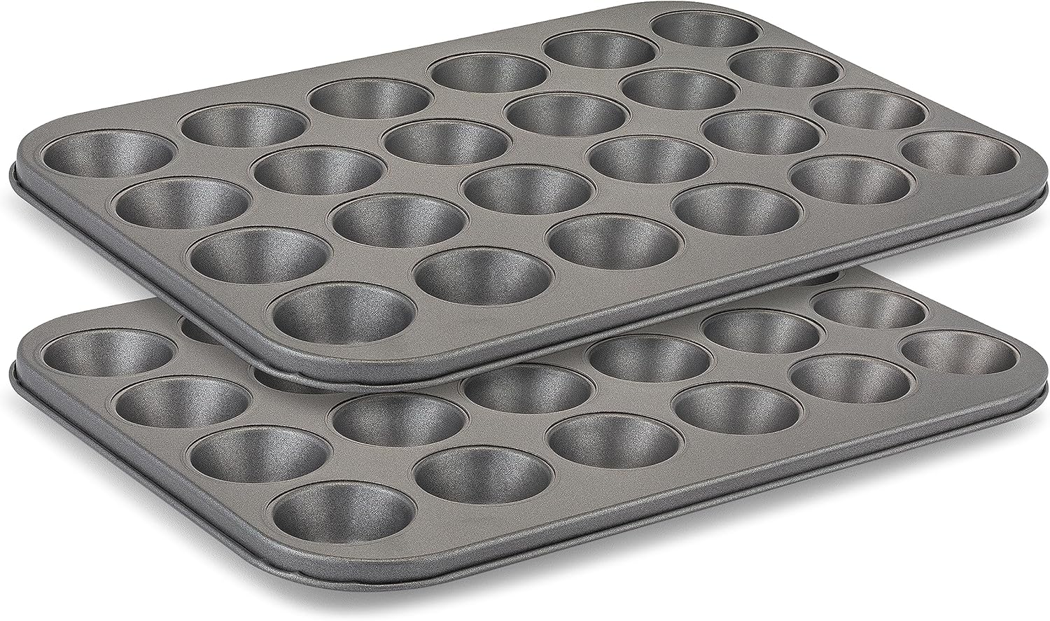 • This carbon steel muffin pan is perfect for baking mini cupcakes, small muffins, and so much more. Our 24-cup design allows you to make up to 2 dozen cupcakes or muffins at once.