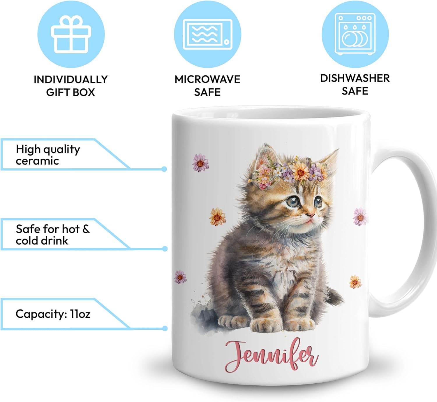 Hyturtle Personalized Gifts Cat Lover - Just A Girl Who Loves Cats Custom Name Ceramic Coffee Mug Cup 11oz - Idea Cute Animal Lover Gifts For Women, Girl Daughter On Birthday, Christmas
