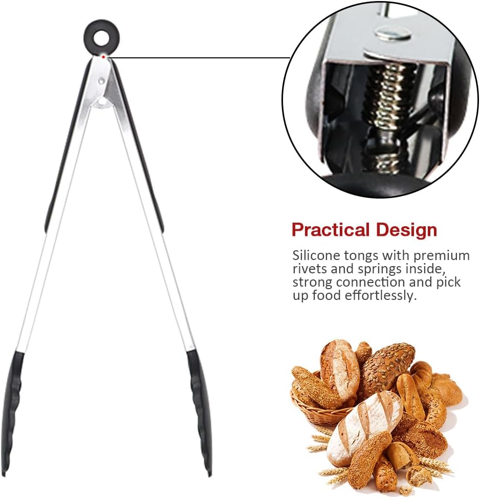 • Easy To Clean: 12 inch tongs with silicone tips that food won't stick to kitchen tongs, so to clean 9 inch tongs only takes rinse with water or just take tongs in the dishwasher. 12 inch kitchen tongs can be given to family and friends who love cooking