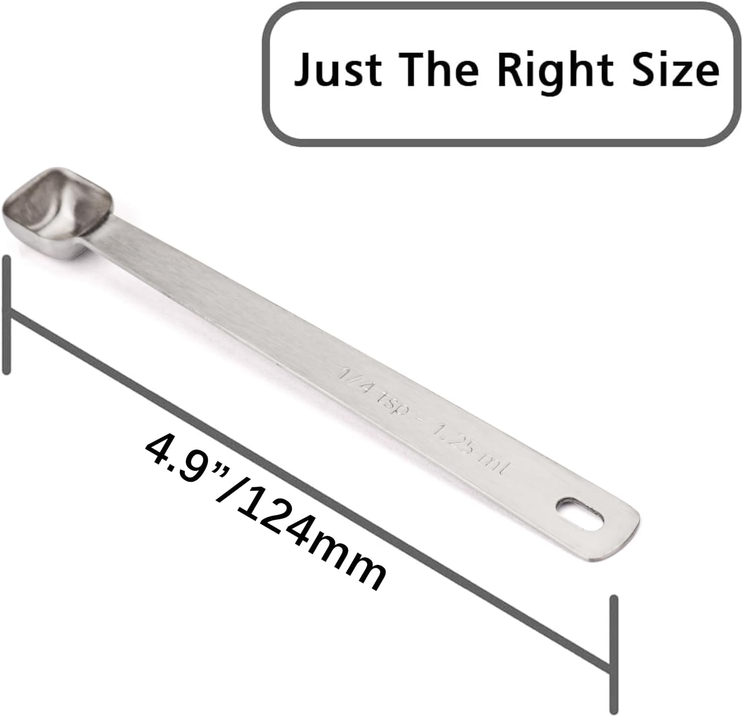 • 【Precise Scales】 The measuring spoon is so precise that it can be the perfect partner for your cooking. The teaspoon has a clear scale on the handle. ⬤1/4 Tsp | 1.25 ML