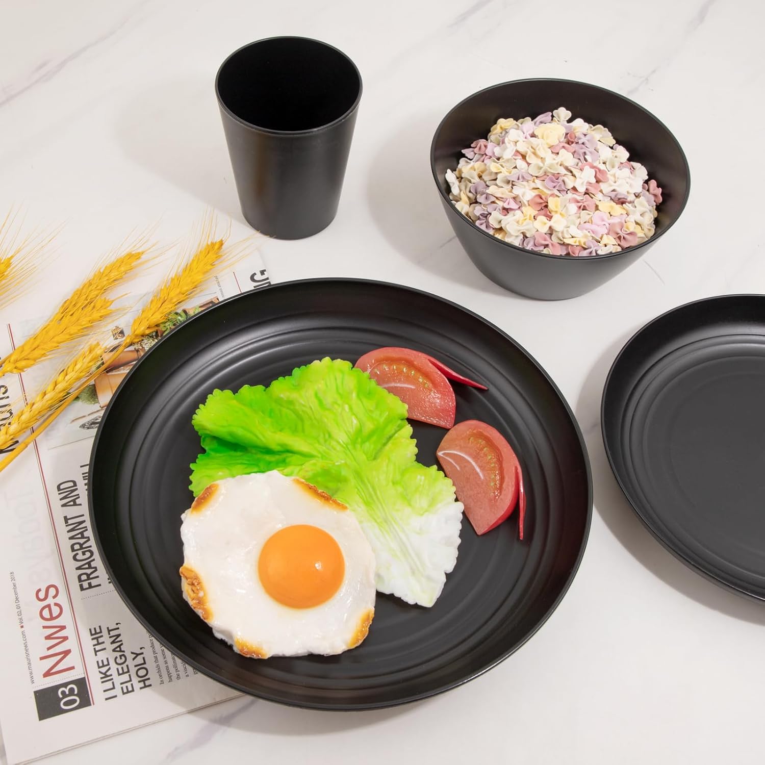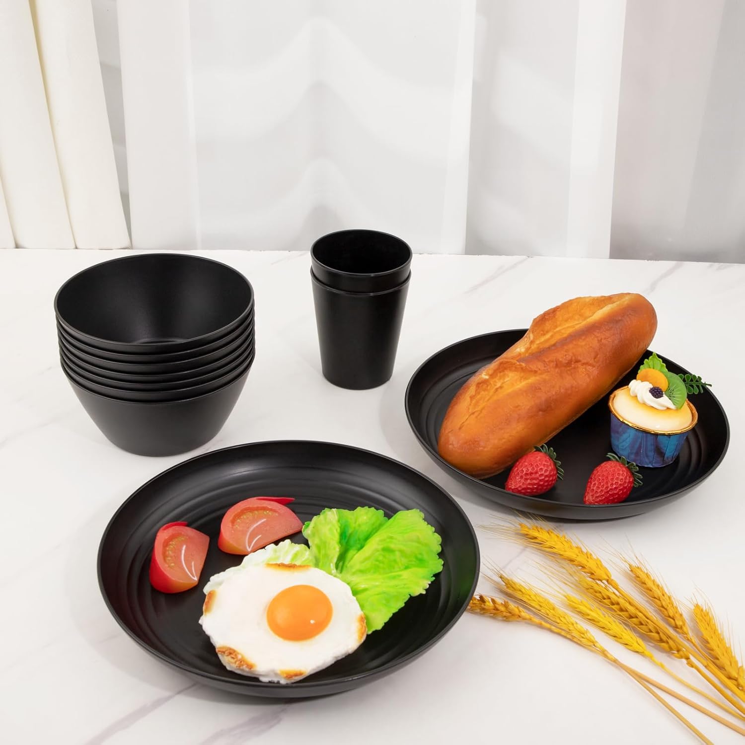 • Value Pack:Our black wheat straw dinnerware sets include 12pcs dinner plates, 12pcs salas plates, 12pcs wheat straw bowsl,12pcs cups, the total is 48 pieces.