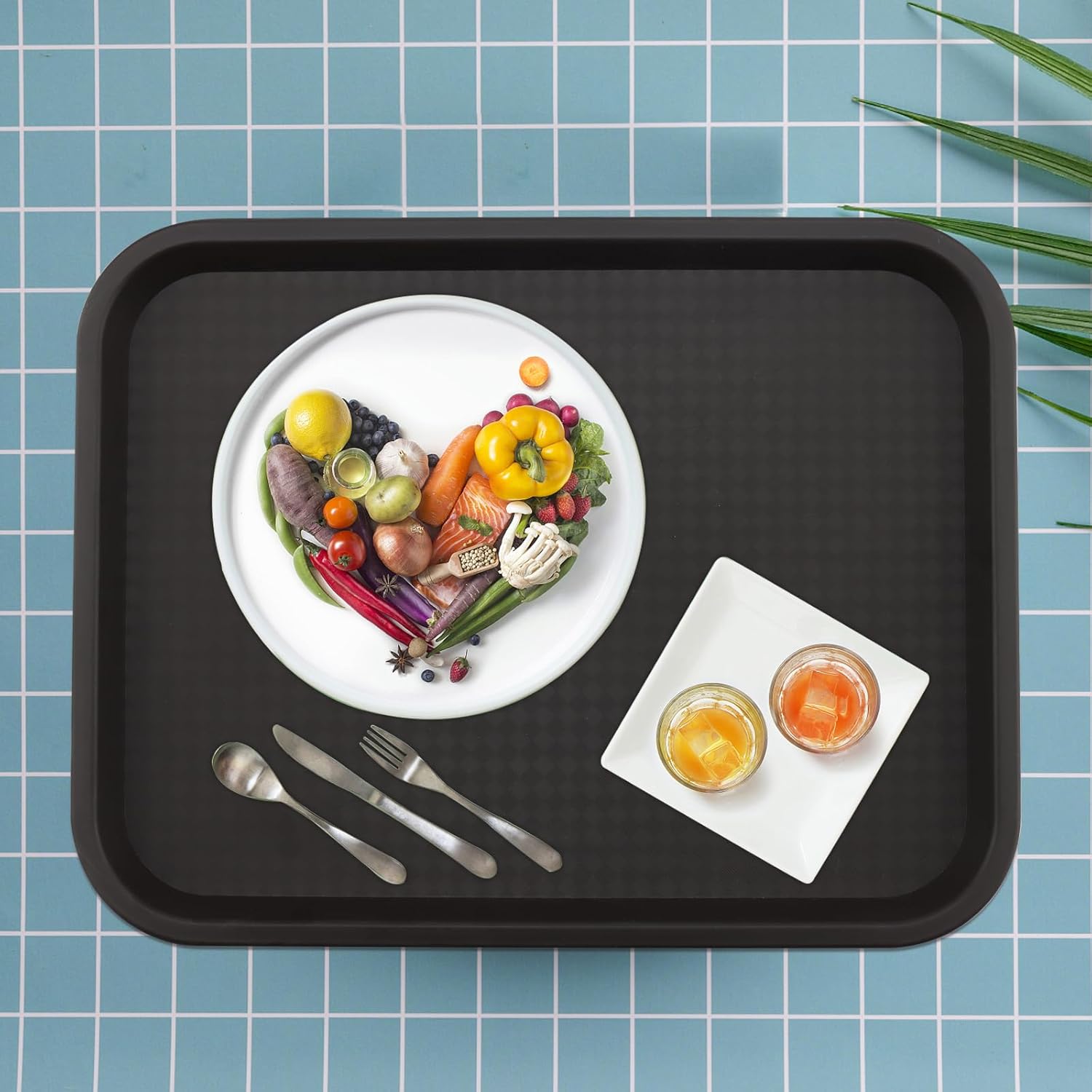 • NICE TEXTURE - The edge of the rectangular restaurant tray is slightly inwardly buckled, which has a non-slip effect when held up. The staggered texture on the front adds a sense of design. The bottom anti-friction design creates a gap with the desktop, easy to hold.