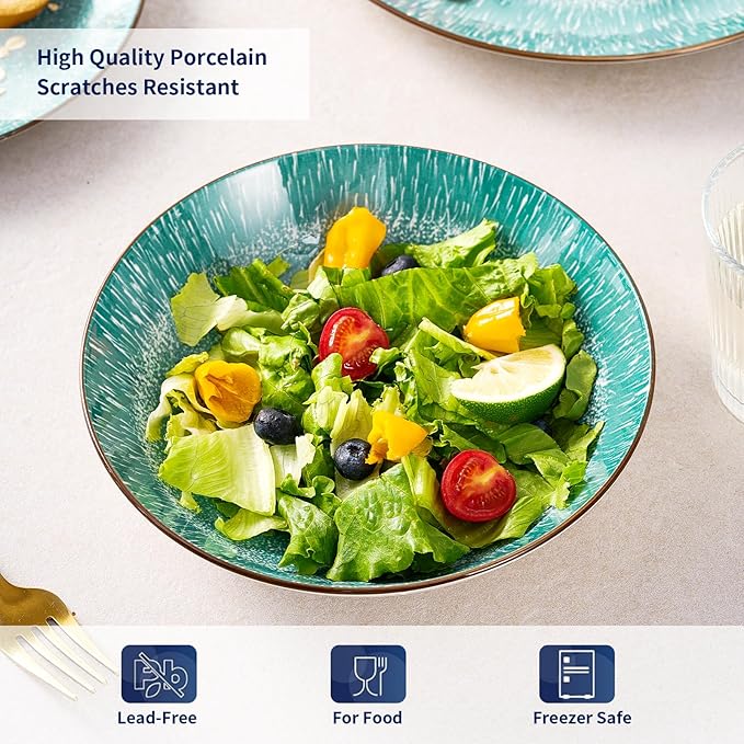 • A VERSATILE STYLE FOR MULTIPLE OCCASIONS - Modern and Stylish Porcelain dinnerware sets can match any kinds of table linen and suitable for dessert, salad, snack, appetizers, raw veggies, sushi, lunch, steak, bread & butter and any other goodies you want to showcase for any occasions or just for everyday use