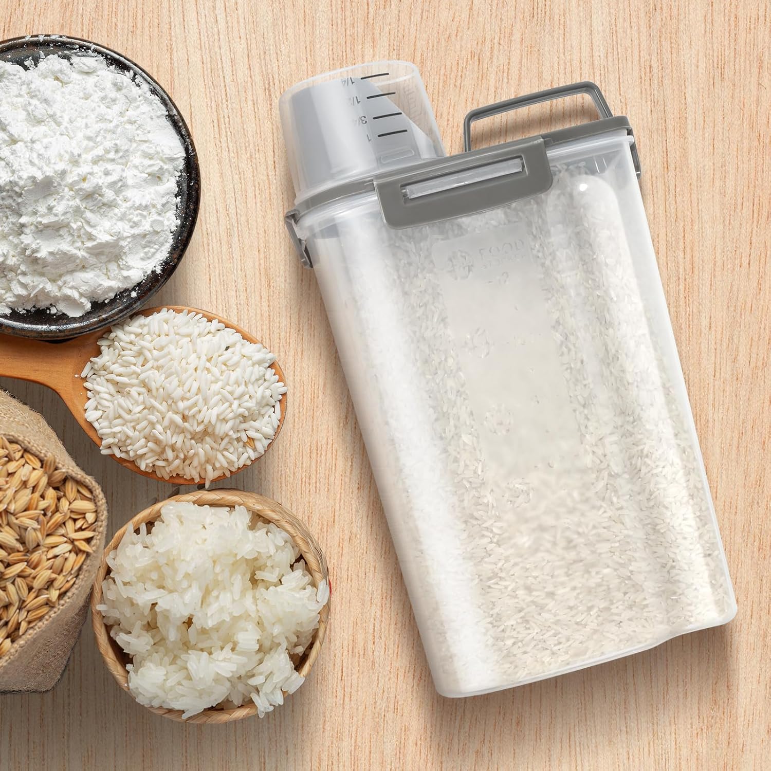 • MESS-FREE FOOD DISPENSER: The rice storage container features a pouring spout makes it a breeze to dispense your ingredients. Its ergonomic design offers a comfortable grip for easy, single-handed pouring