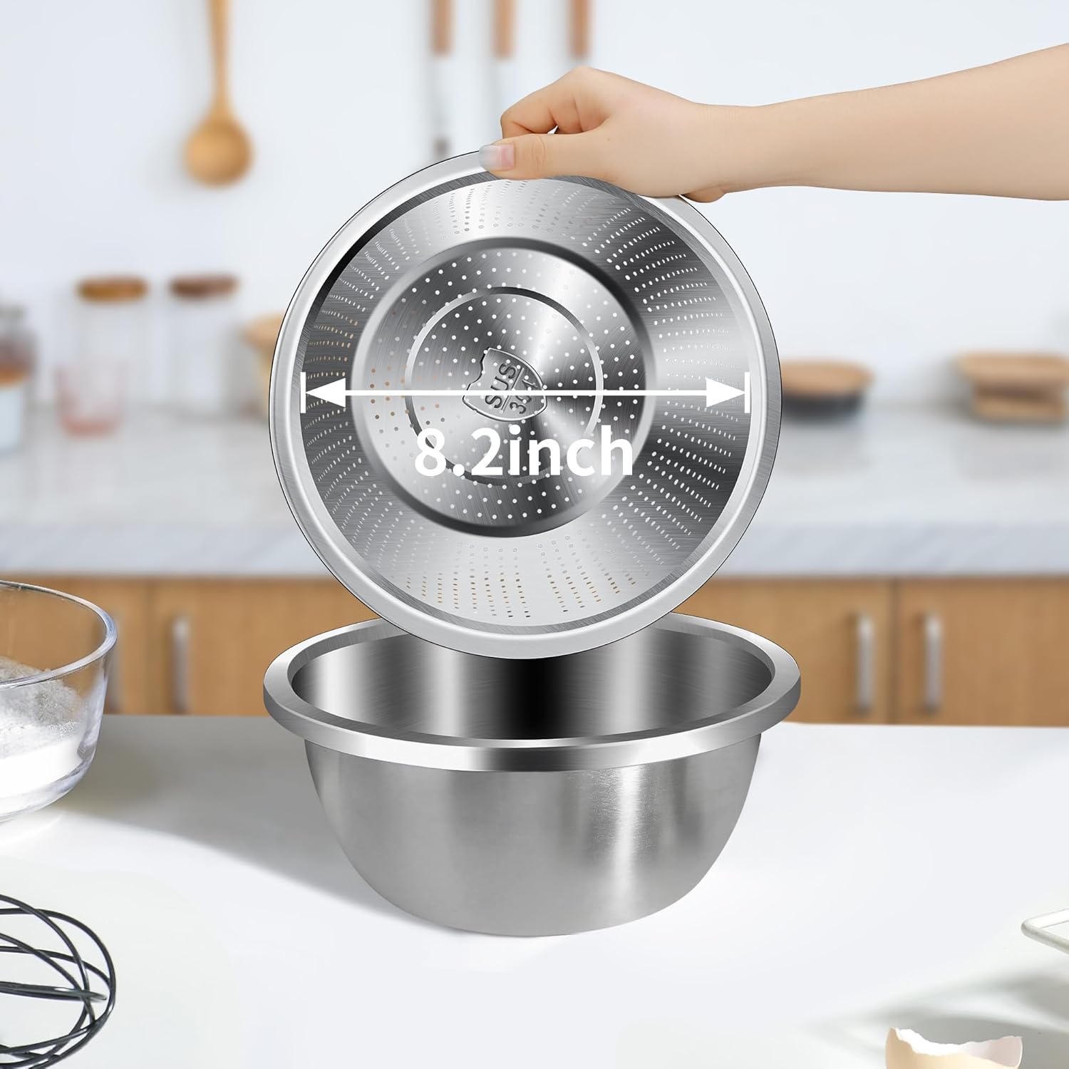 Colander 304 Stainless Steel 4-quart with Mixing Bowls, Strainer for Kitchen Food For washing vegetables, fruit, rice, Dishwasher Safe. (2PC)