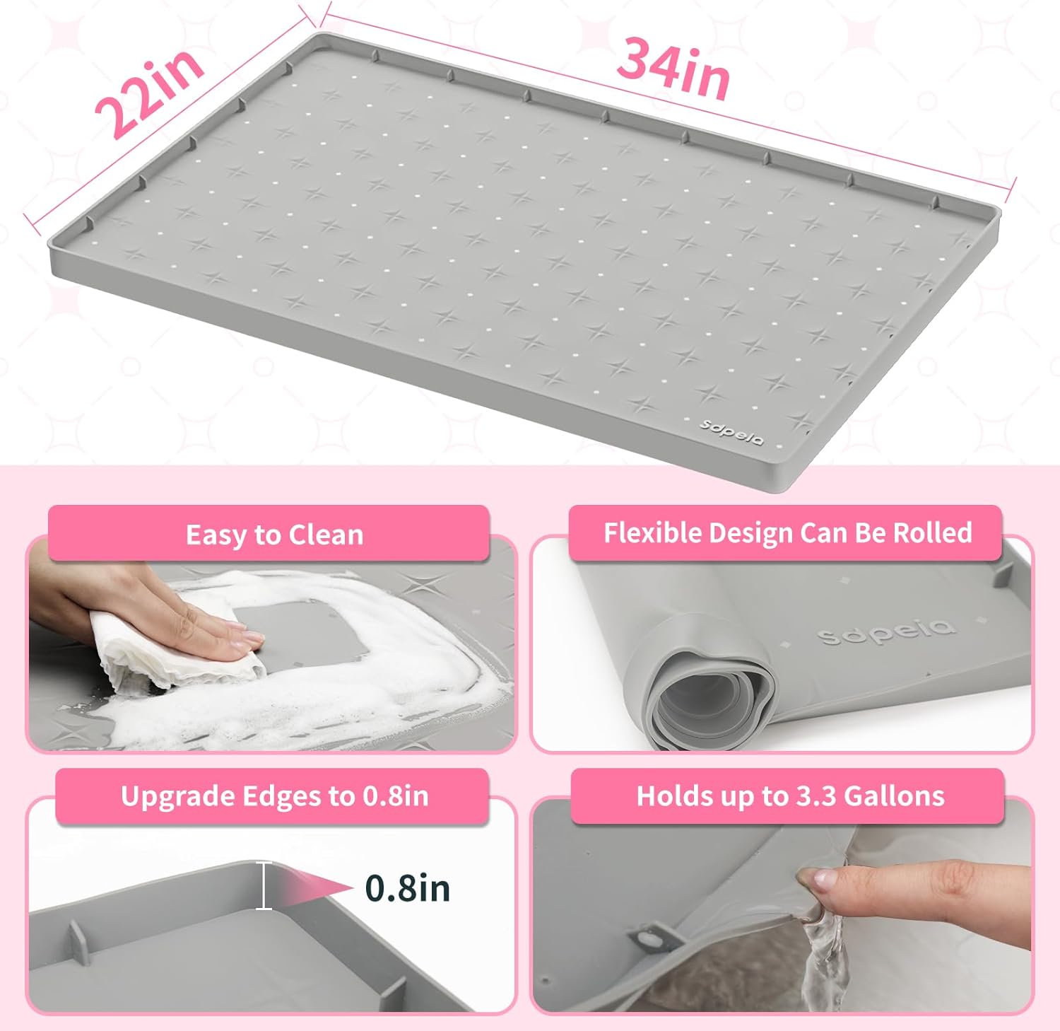 Sdpeia Under Sink Mat 34"×22" – Waterproof Silicone Cabinet Liner & Sink Protector for Kitchen & Bathroom, Multi-Purpose Organizers Tray for Pets, Laundry, Cat Litter Mat