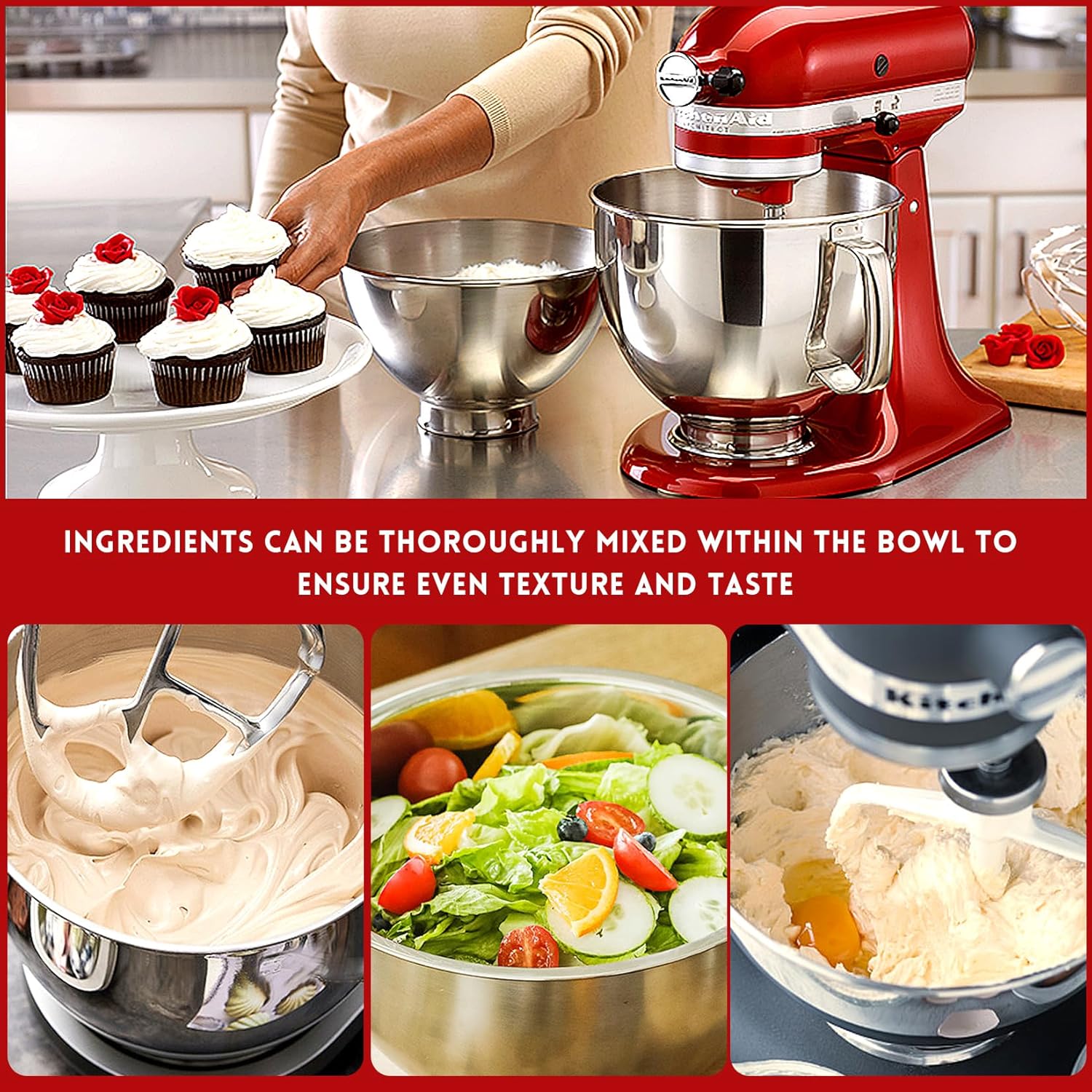 GasSaf 5Quart Mixing Bowl, Stainless Steel Kitchen Mixer Bowls Suitable for Kitchen-aid Series 4.5-5 QT Tilt-Head Mixer