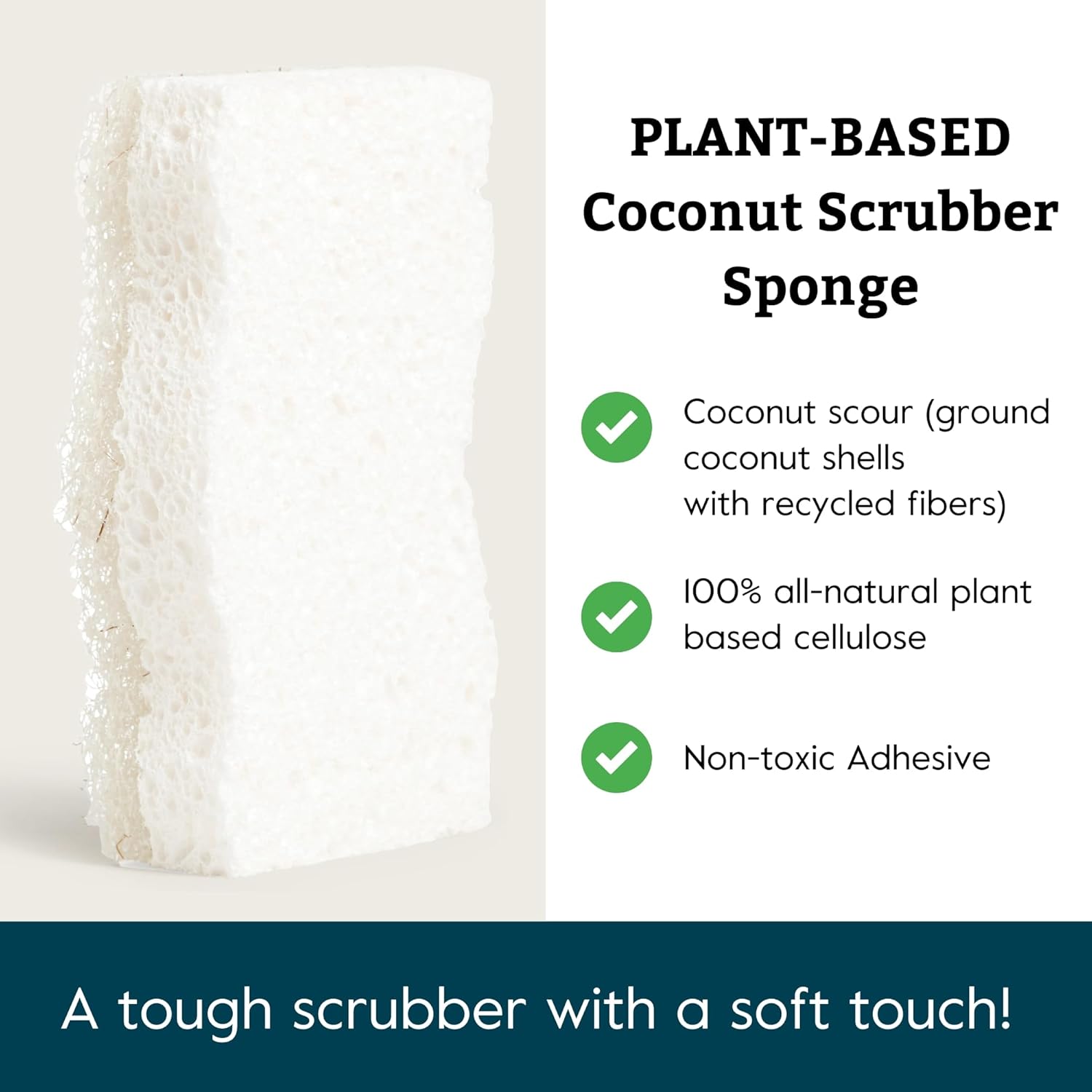 • EARTH-FRIENDLY HOUSEHOLD ESSENTIAL: This non-scratch, super absorbent dish sponge is made from natural materials of coconut husk & 100% plant-based cellulose. A cleaning essential for every household kitchen & bathroom. Great as a cast iron scrubber