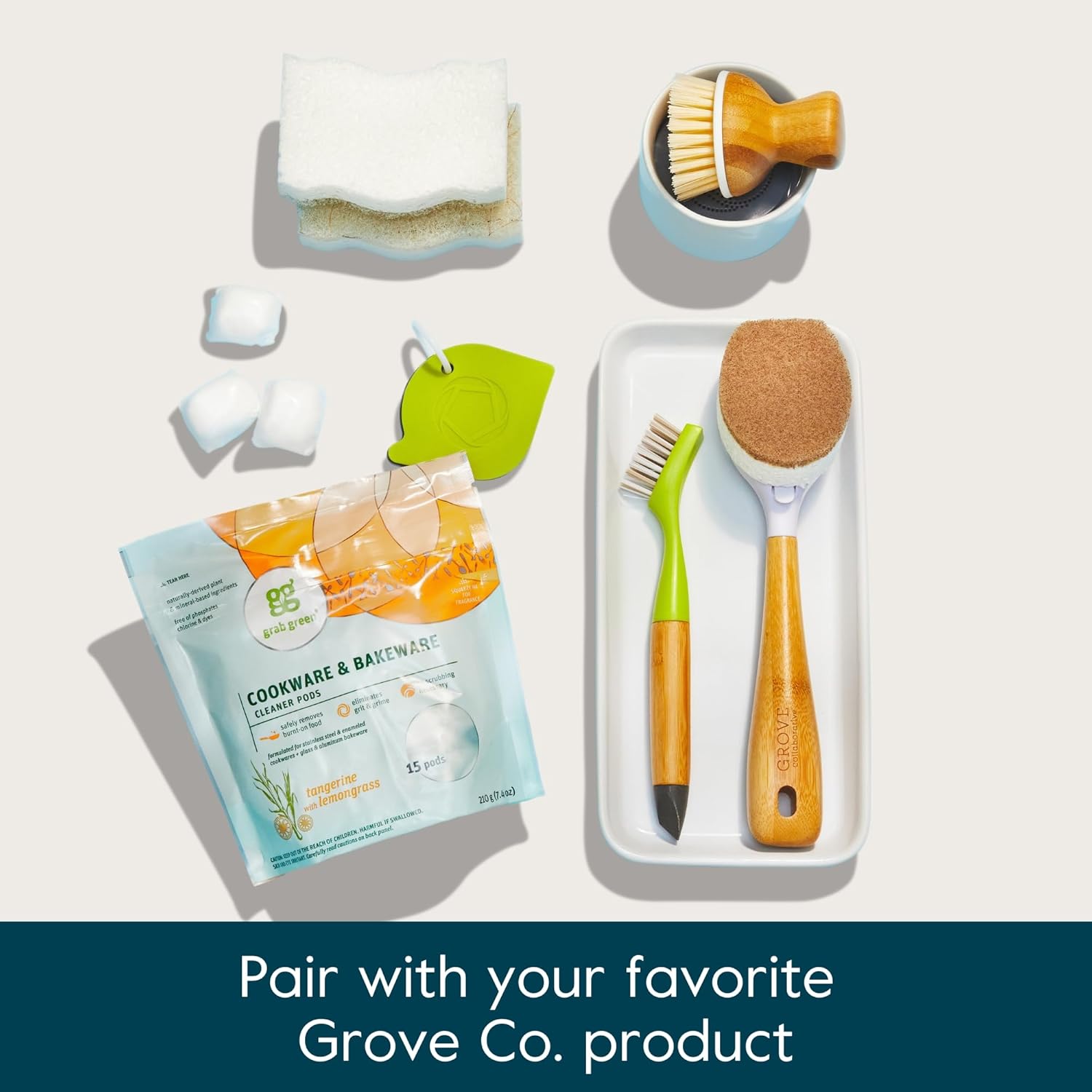 Grove Co. Sponges, Natural Coconut Scrubber Kitchen Sponge, Dual-Sided, Non-Scratch, Super Absorbent Plant-Based Cellulose with Coconut Husk Scourer, Household Cleaning Essentials, 6 Pack