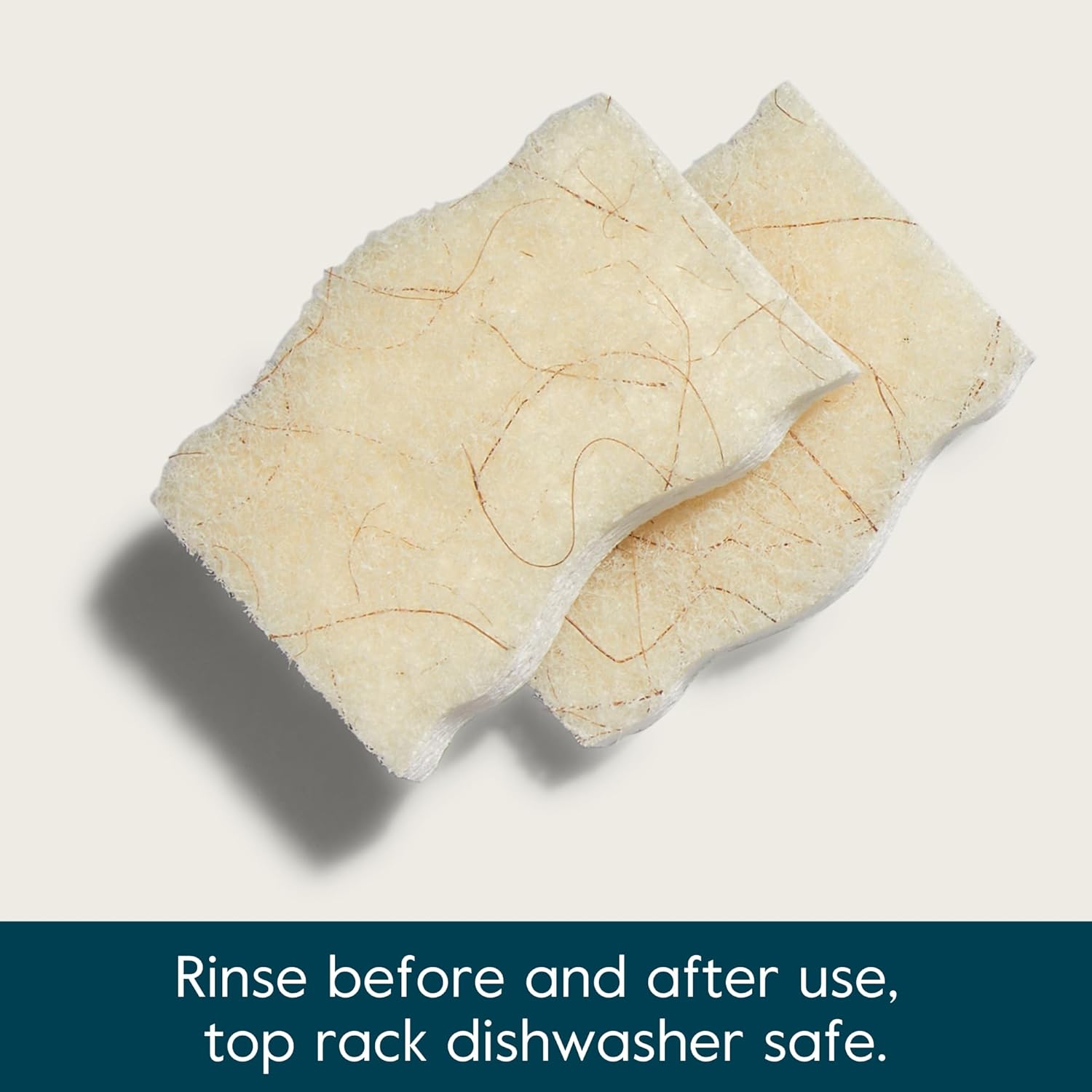 • EFFECTIVE NON-SCRATCH CLEANING: Our dual-sided natural sponge is strong yet gentle. The scouring pad with ground coconut shells and recycled fibers ensures this powerful scrubber easily & gently removes tough mess from dishes and surfaces without scratching