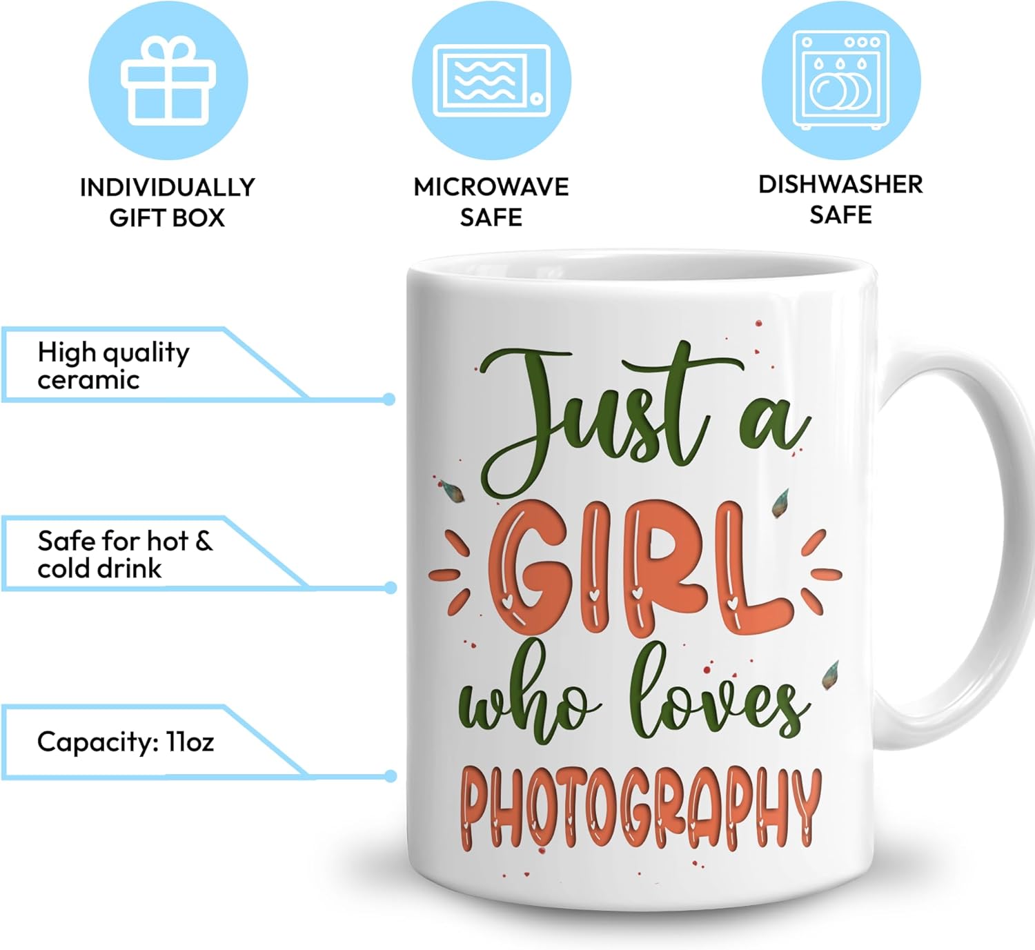 Hyturtle Personalized Gifts Photography Lover - Just A Girl Who Loves Photography Custom Name Ceramic Coffee Mug Cup 11oz - Perfect Idea Gifts For Women, Girl Daughter On Birthday, Christmas