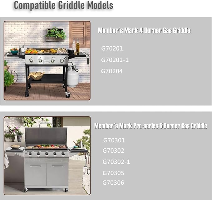 • Identical with Original Drip Pan Liner- Compatible with Member's Mark 4-burner gas griddle:G70201, G70201-1, G70204. Pro-Series 5 burner griddle: G70301, G70302, G70302-1, G70305,G70306