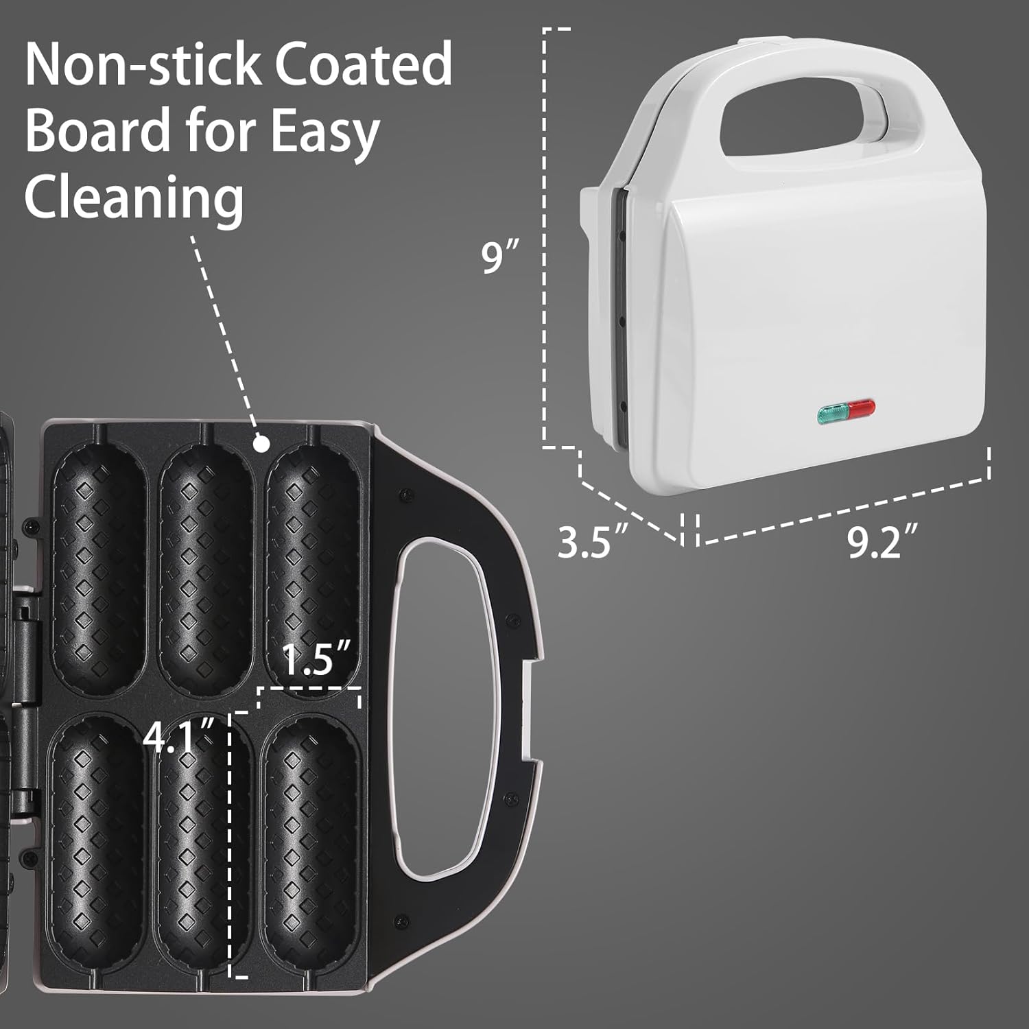 • 6 Corn Dogs at Once: The hot dog maker machine can make up to 6 corn dogs at the same time, satisfying the family's breakfast needs in a convenient and efficient way!