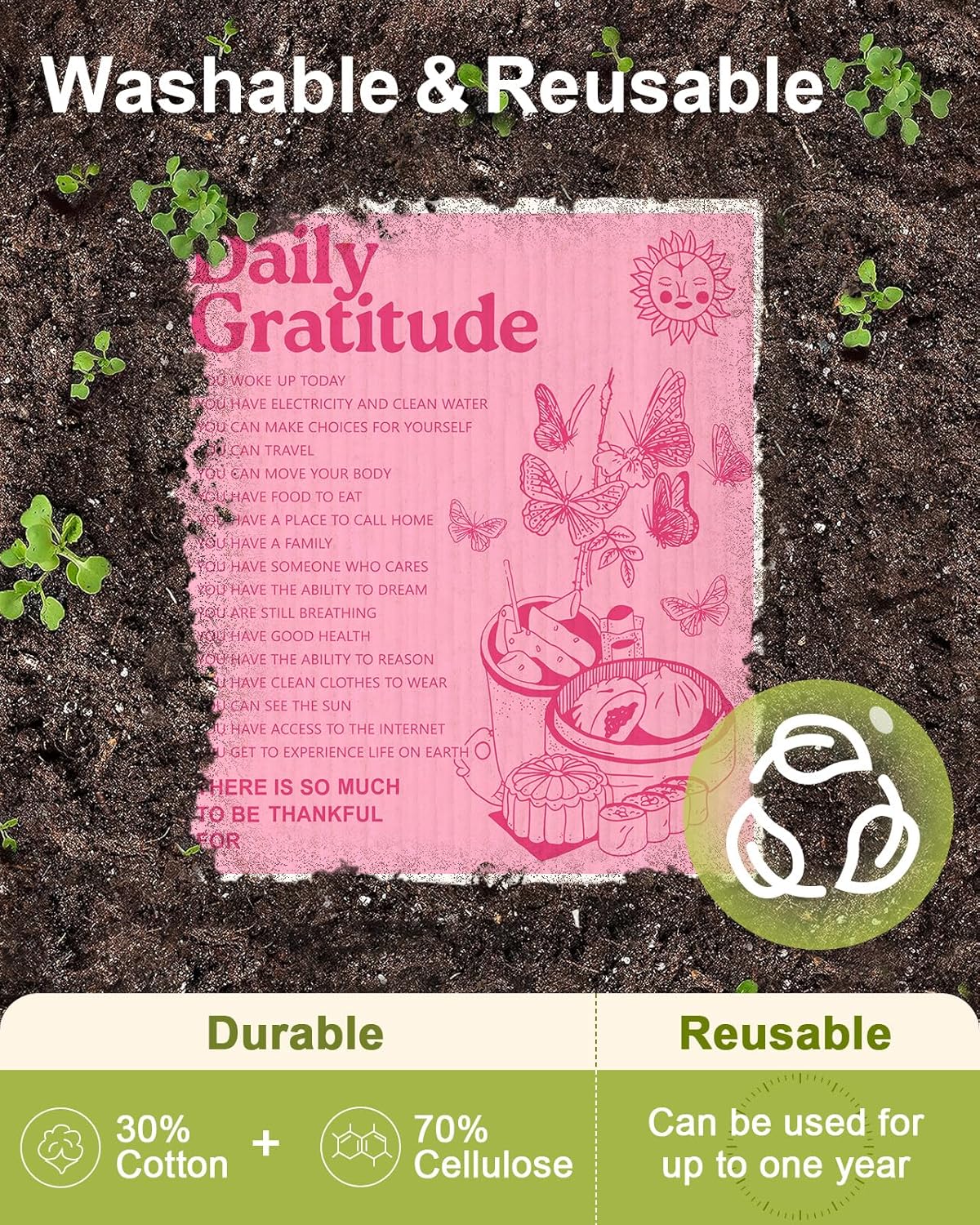 • CLEAN EASILY: This washable sponge cloths is easily wash cloths in the dishwasher, washing machine, without them becoming brittle or fading. With proper care these dish towels can last up to few months, makes a unique zero waste thing