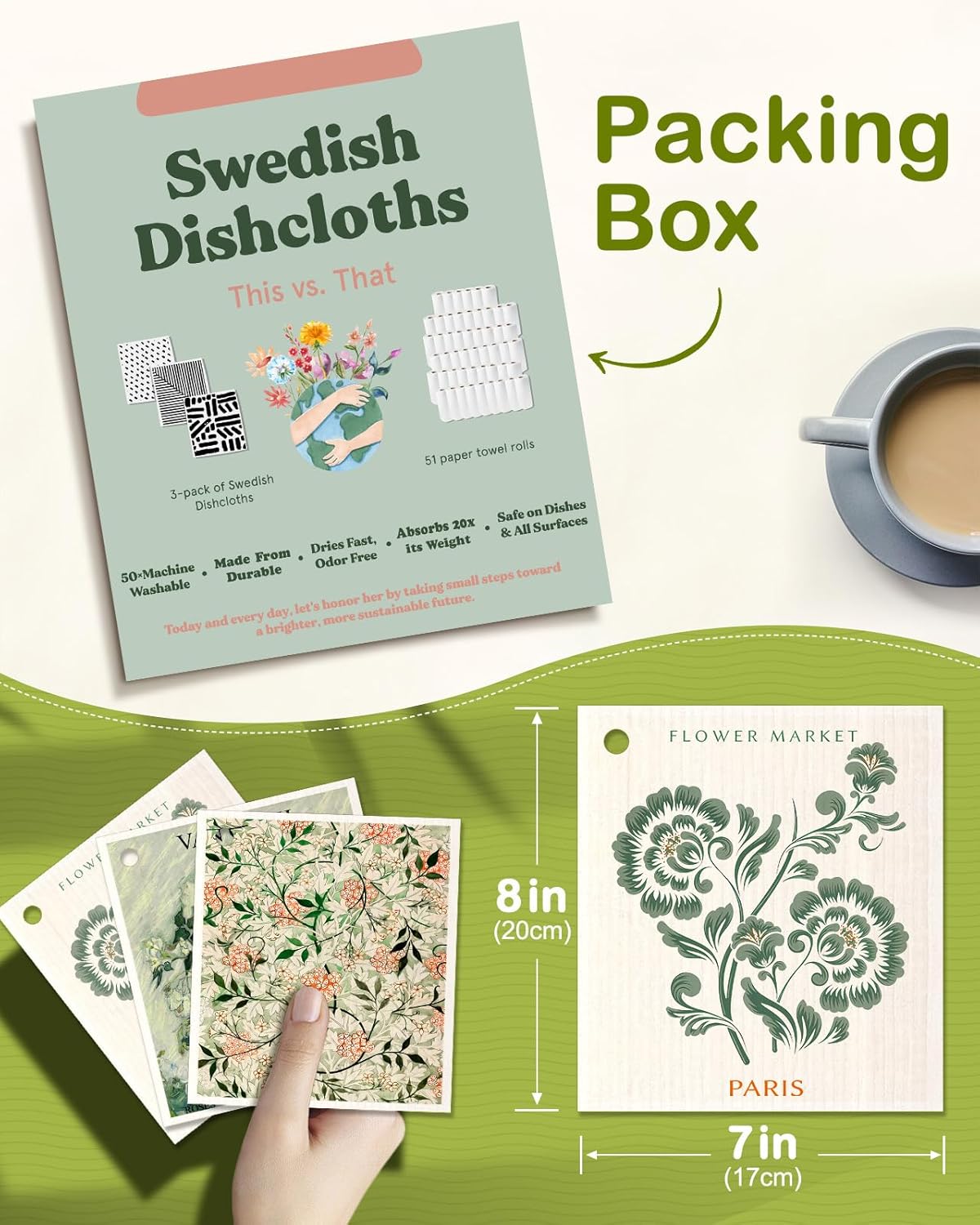 • SPECIAL HOLE: This swedish rags design with small hole for easier hanging. And this swedish wipe set design with a beautifully packaged and makes the good set for birthdays, holidays, housewarming parties, and other special occasions
