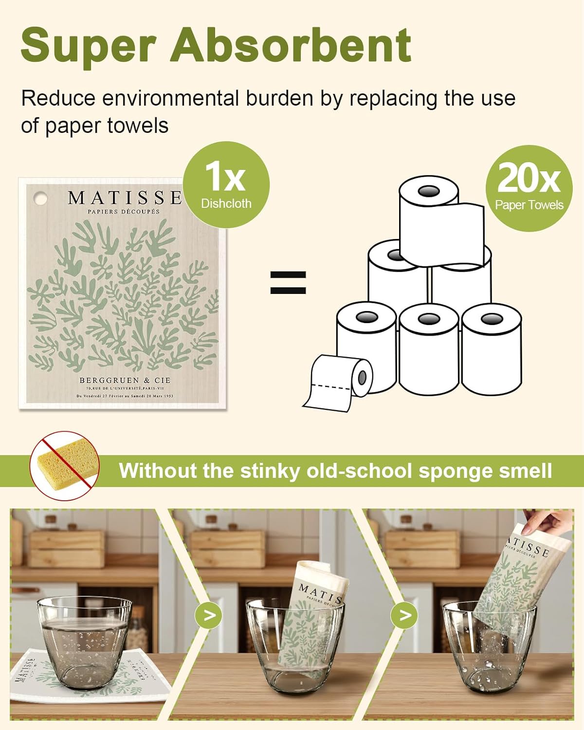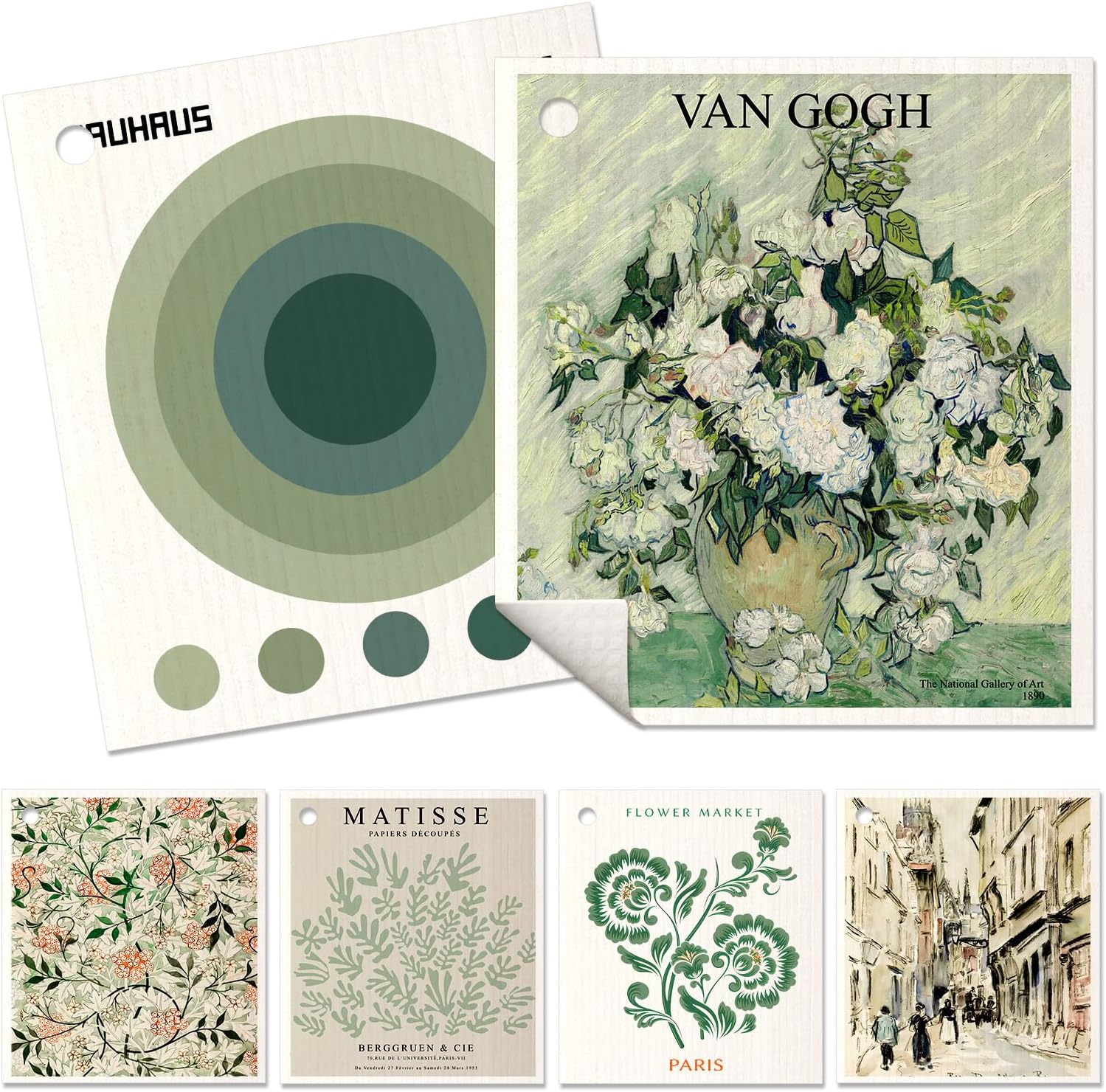 6 Pack Swedish Dishcloths for Kitchen - Reusable Dish Cloths for Washing Dishes Absorbent Cute Funny Kitchen Towels Cleaning Sponge, Green Artist
