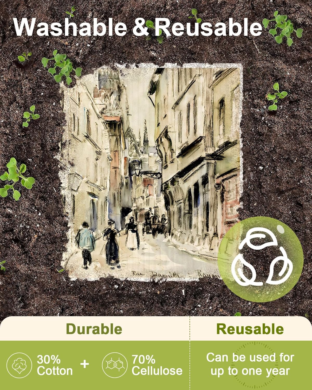 • REUSABLE: Our reusable swedish dish Cloths made of 30% cotton and 70% cellulose, fast drying and super absorbent, multiple cleaning projects around the kitchen and house