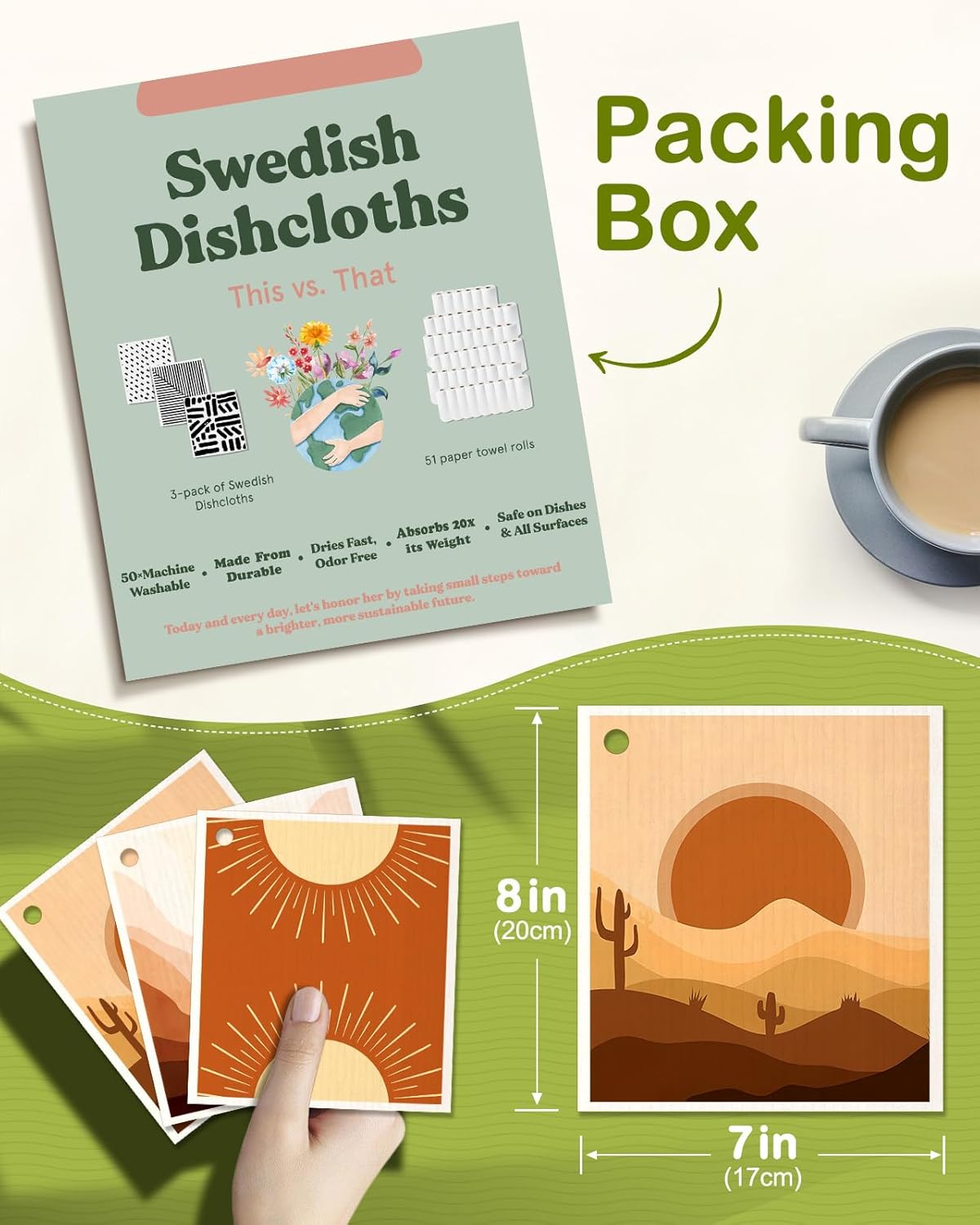 • SPECIAL HOLE: This swedish rags design with small hole for easier hanging. And this swedish wipe set design with a beautifully packaged and makes the good set for birthdays, holidays, housewarming parties, and other special occasions