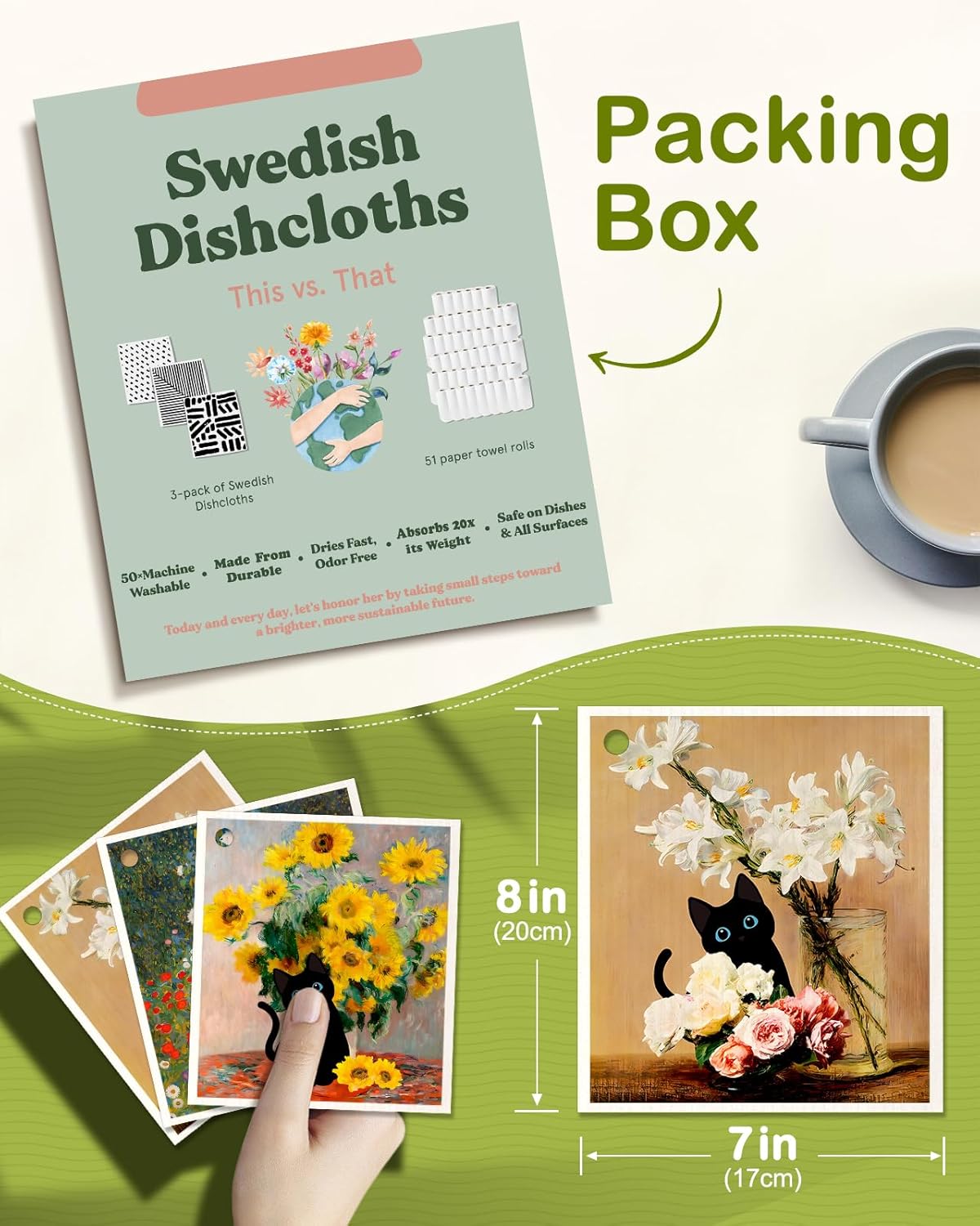 • SPECIAL HOLE: This swedish rags design with small hole for easier hanging. And this swedish wipe set design with a beautifully packaged and makes the good set for birthdays, holidays, housewarming parties, and other special occasions
