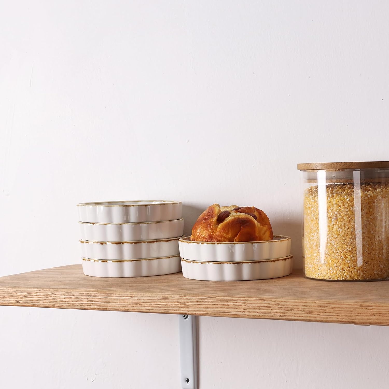 • HUMANIZED DESIGN: This Ramekins size is 4.8" L x4.8" W x 0.9" H, suitable for daily use. They can be stacked, very convenient for storage, and will not take up a lot of space