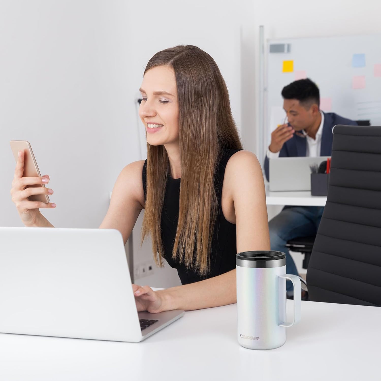 • PREMIUM SLIDING LID: The thermal mug has a new upgrade grey sliding lid, Drink hole on the top for easier sipping. BPA-free, Insulated coffee mug with lid and handle have a No Sweat Design to make sure your hands stay dry.