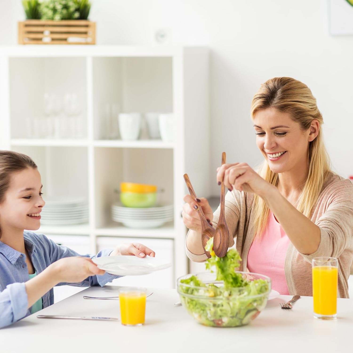 • Premium Quality - Made from natural wood, these spoons are non-toxic and odorless, with smooth, edge-free surfaces for safe usage, coated with a water-based varnish for a non-stick finish, easy to clean after use